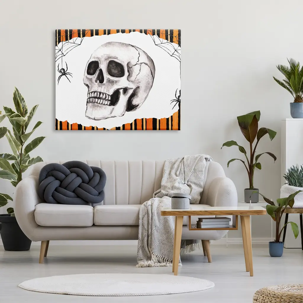 The Webbed Skull 16x16 Indoor / Outdoor Pillow from our Halloween Collection features a scull surrounded by a spider web that makes for an extra spooky design. This indoor/outdoor pillow helps you create a frightening atmosphere in your interior decor this Halloween. Digitally printed on demand, this exclusive design displays vibrant colors. The result is a beautiful accent piece that will make you the envy of the neighborhood. Our beautiful indoor/outdoor pillows are designed and printed in the USA. Double-sided Print 16x16 Cover Material: Spun Polyester Fill Material: Polyester/Polyfill Removable Cover: No No UV protection Stain, mildew, and water resistant Washing Method: Spot clean and dry clean only