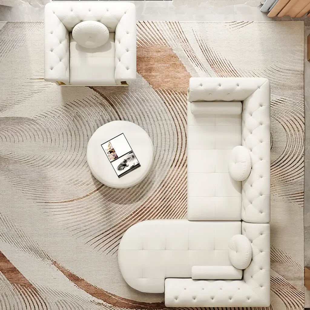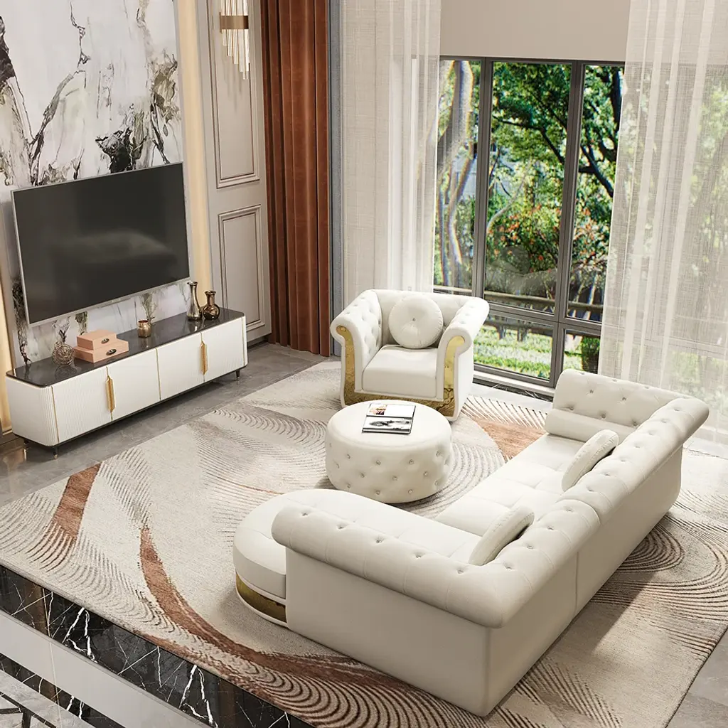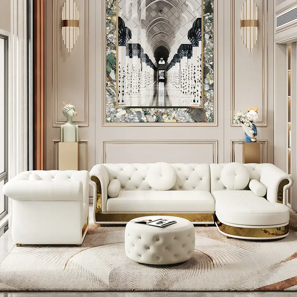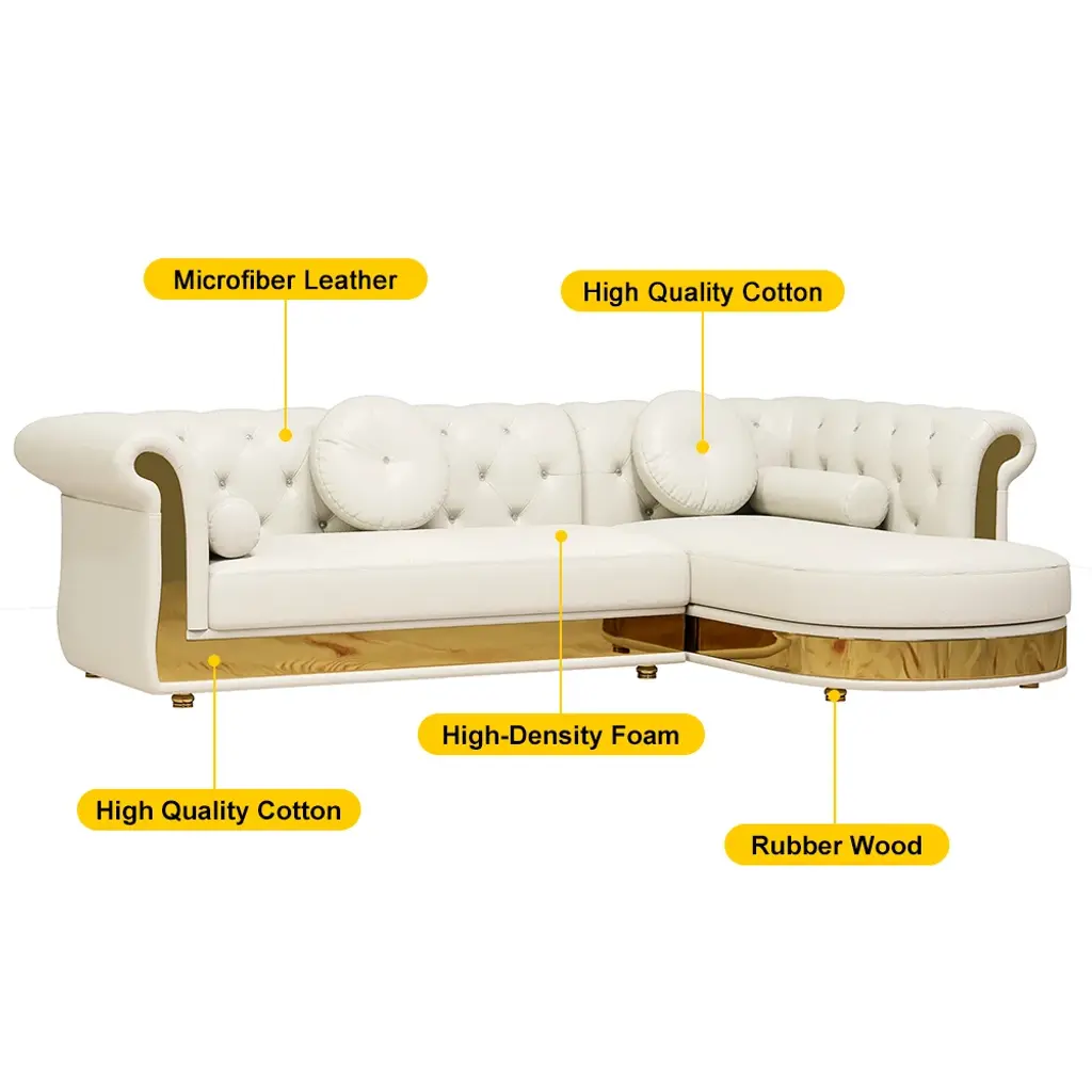 【Modern Style】Blending classic and contemporary elements. It brings elegant style to your living room and blending well with any home decor. Featuring diamond tufting details, this sofa injects multifaceted texture into your overall design scheme. 【Contemporary Design】Microfiber leather upholstery and seating padding with high-density foam add maximum comfort for you when lounging after a long day. Designed with the traditional design, this sofa hits all the key elements, with deep button tufting, scrolled arms, and gold legs. 【Combination Sofa Pieces】This sofa with white upholstery is versatile and stylish. Including the Loveseat sofa and the single chair sofa, with ottoman & 3 pillows included in the package, to meet various daily use needs.