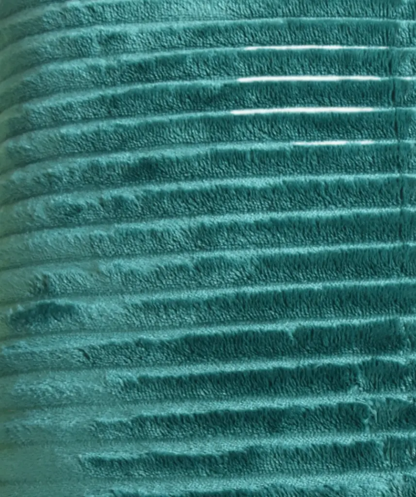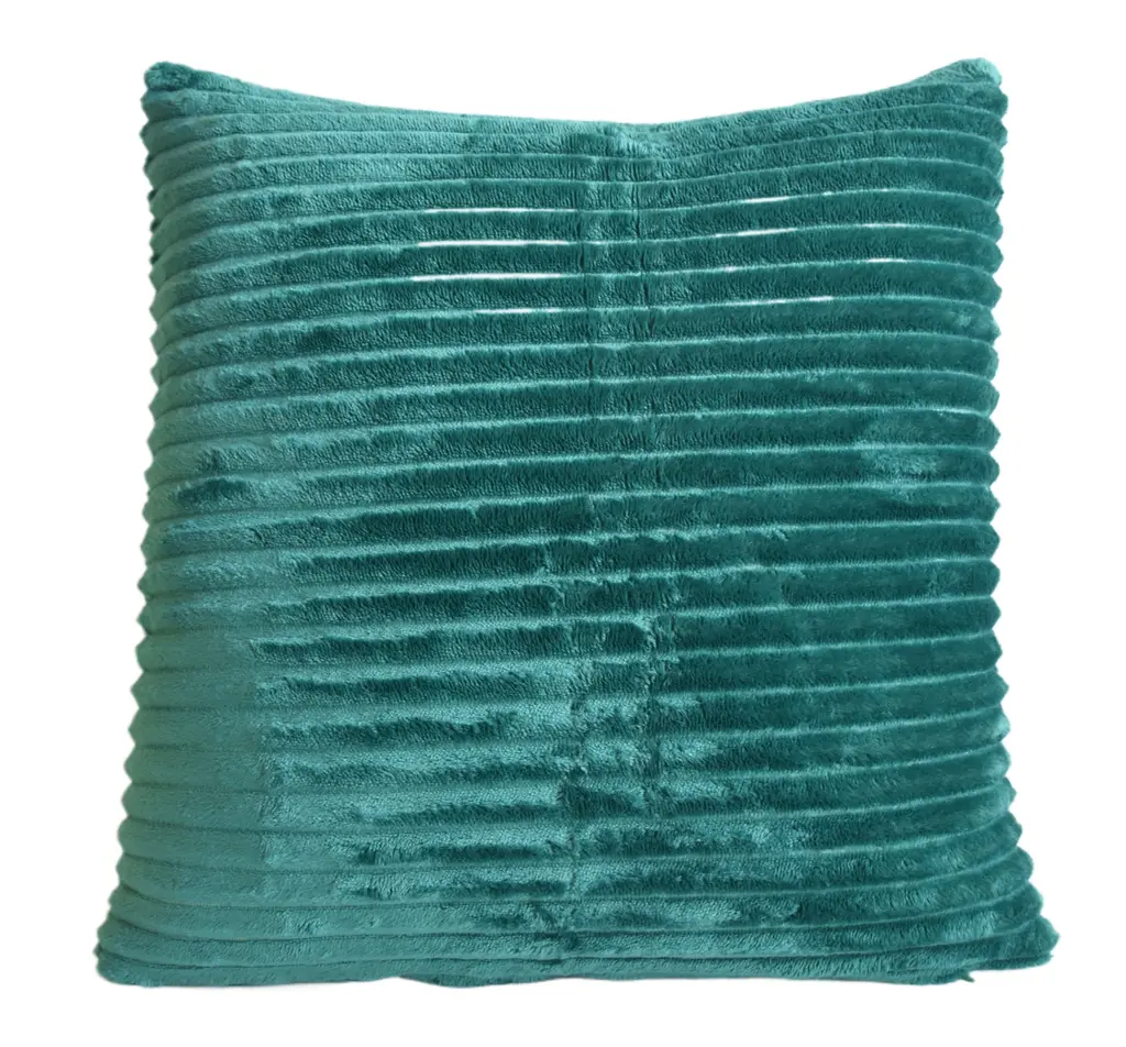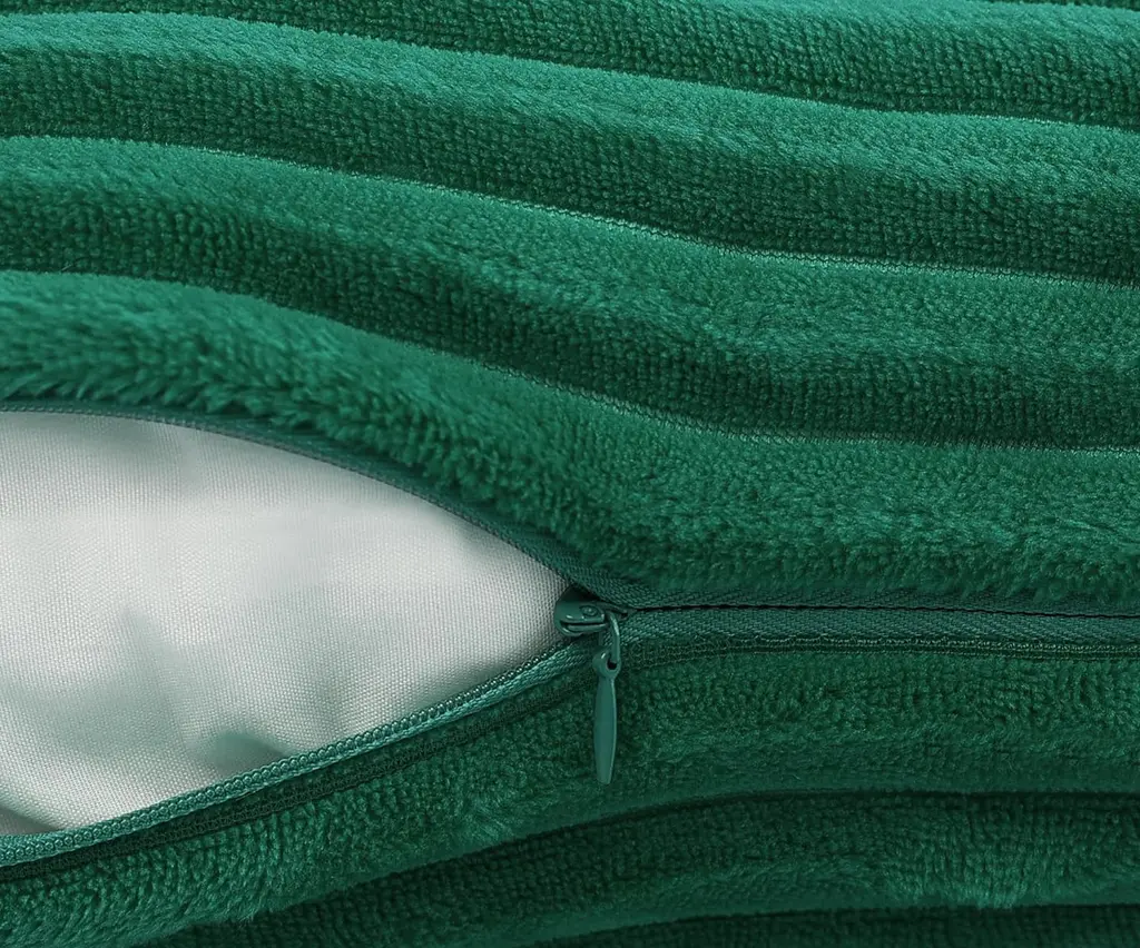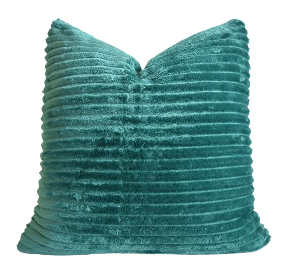 Custom-tailored reversible pillow in designer ultra-soft emerald green ribbed cotton blend fabric. Same fabric on the reverse. Hidden zipper closure. Plump generous goose feather-and-down insert. Excellent new, unused condition!!