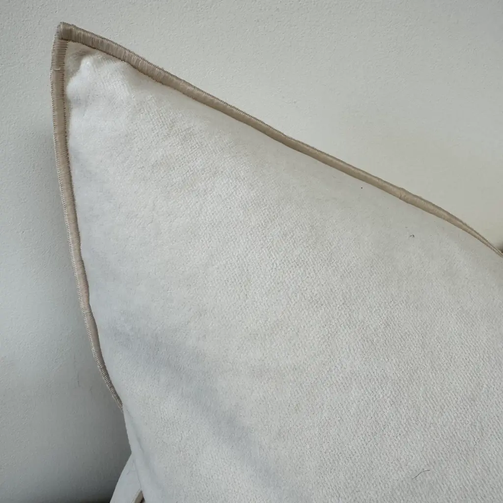 European Vintage Style Creme Velvet Accent Pillow With Down Insert