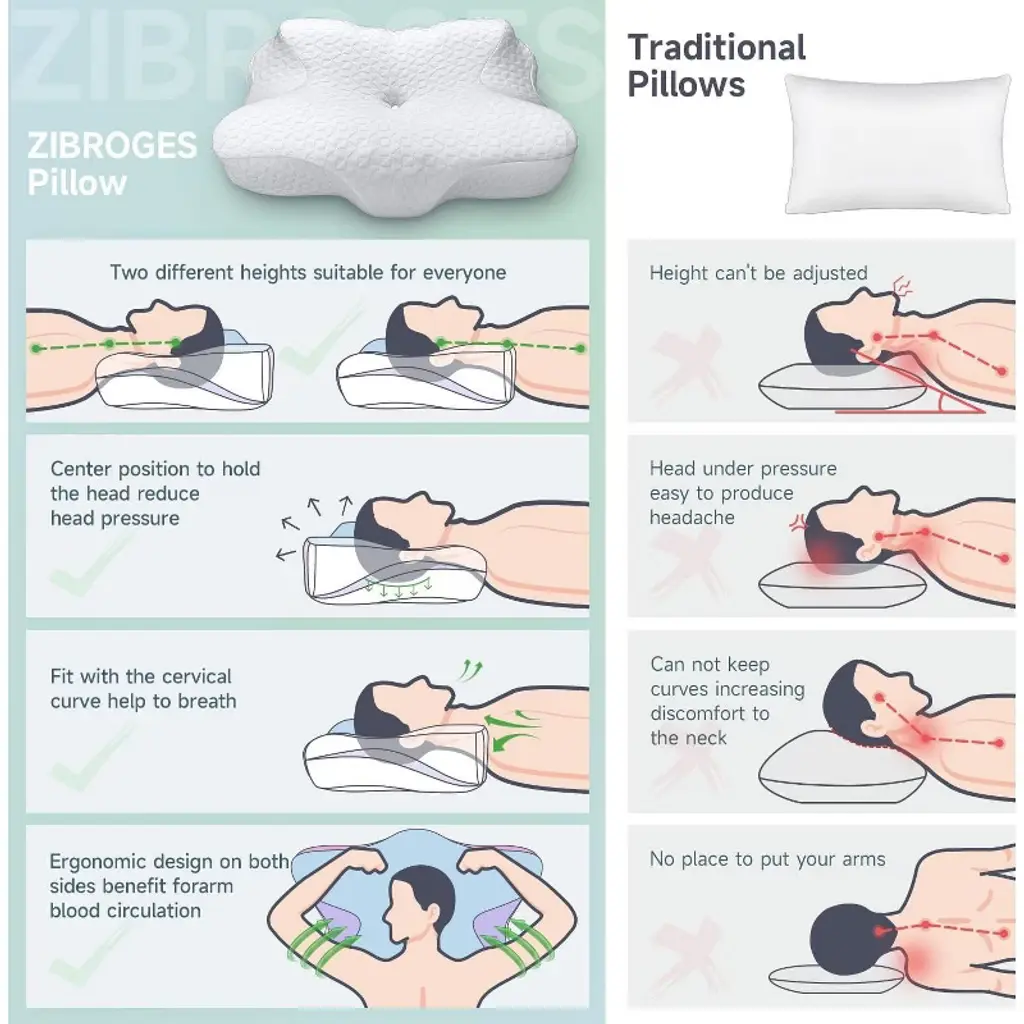 Are you always waking up with neck cramps or back pain? Our proven ergonomically designed, contoured memory foam pillow supports your head, neck, shoulders and back perfectly. The innovative design allows our pillows to naturally fit your curved spine perfectly, providing proper support for spinal alignment,makes you to shift between positions comfortably.So you will wake up relaxed and start a more energetic da