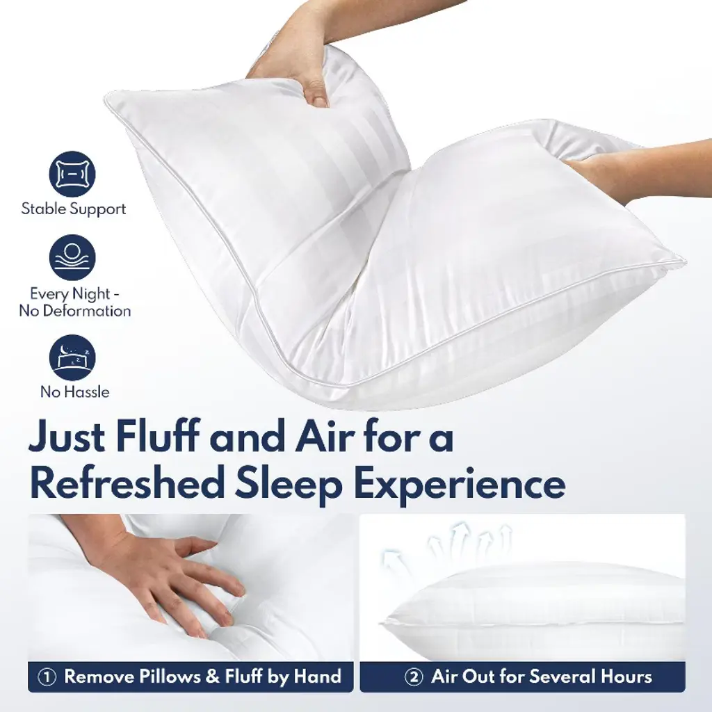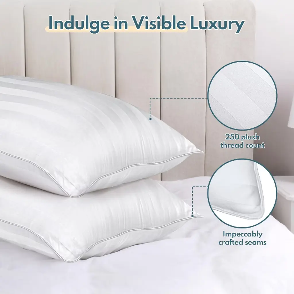 Fapo Set Of 2 Bed Pillows, Queen Size, Soft Stripe Microfibre Pillow