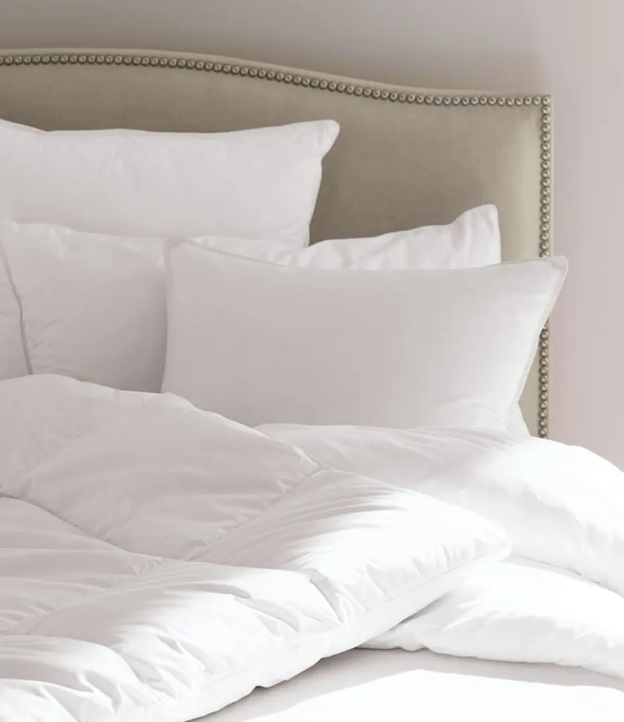 For those who prefer a firmer pillow, the feathers in this blended-fill pillow feature natural "spines," which make for a more substantial feel. The core support of the feathers is wrapped in the fluffy luxury of domestic duck down for a superior-quality pillow with nothing but pure white fill. The preshrunk cambric cotton shell is closely woven to keep the fill inside. Down Alternative Bed Pillows and Premium Down Bed Pillows also available.