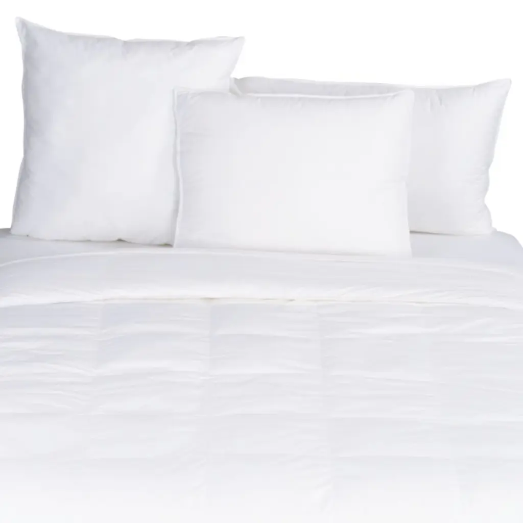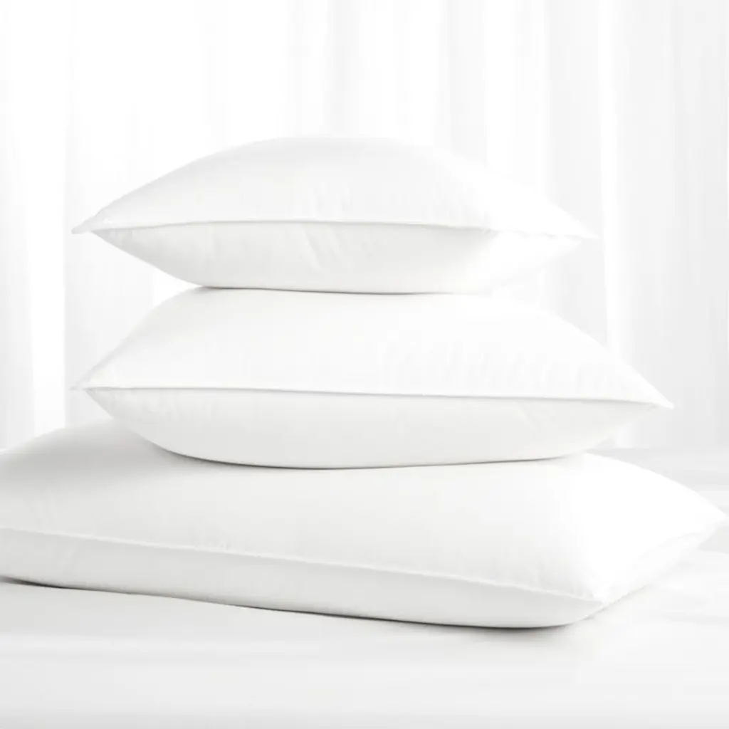 For those who prefer a firmer pillow, the feathers in this blended-fill pillow feature natural "spines," which make for a more substantial feel. The core support of the feathers is wrapped in the fluffy luxury of domestic duck down for a superior-quality pillow with nothing but pure white fill. The preshrunk cambric cotton shell is closely woven to keep the fill inside. Down Alternative Bed Pillows and Premium Down Bed Pillows also available.