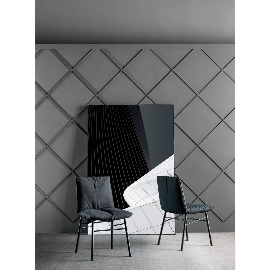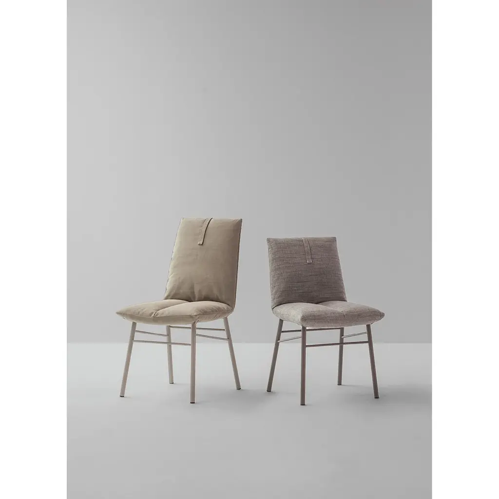 Pil is a collection inspired by the object that is itself a symbol of softness, the pillow. Usually interpreted as an accessory, here the pillow plays the starring role, shaped and adapted to create a chair that conveys comfort and relaxation. The main components of the Pil soft chair are the backrest cushion and the seat cushion. The latter features a fold in the middle, created to generate an enveloping effect that physically and visually emphasizes the feeling of softness. The base consists of metal legs, with the crossbars set at a special angle, to create an original graphic interweaving effect. Available in different versions: Pil, Pil up (with higher backrest), Miss Pil (with armrests), Miss Pil up (with higher backrest and armrests), Pil too (stool), Pil armchair and Pil armchair hi.