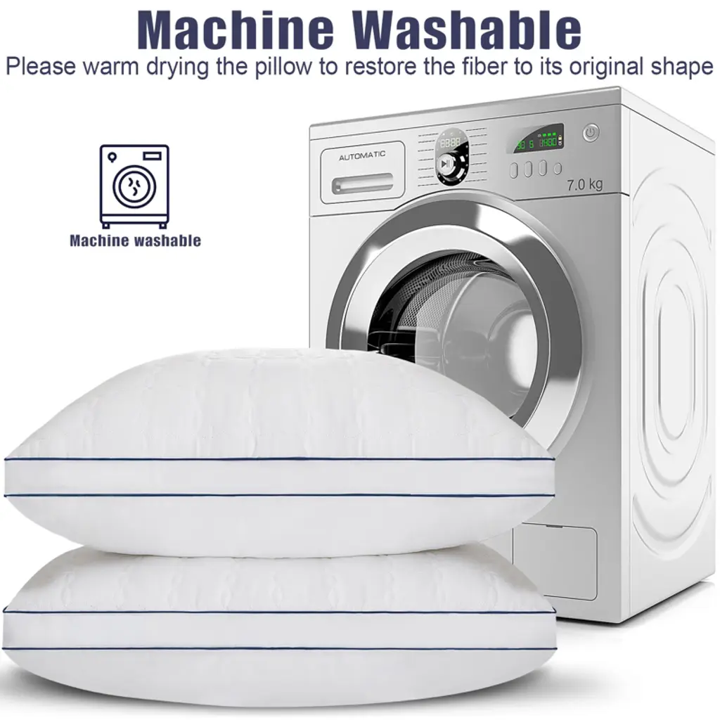 This set of 2 king - size pillows features a neck - fitting design to ease pain, a non - flattening rectangular shape, and is machine washable. Compatible with all sleep positions, they provide reliable support and easy care for restful, hassle - free sleep.