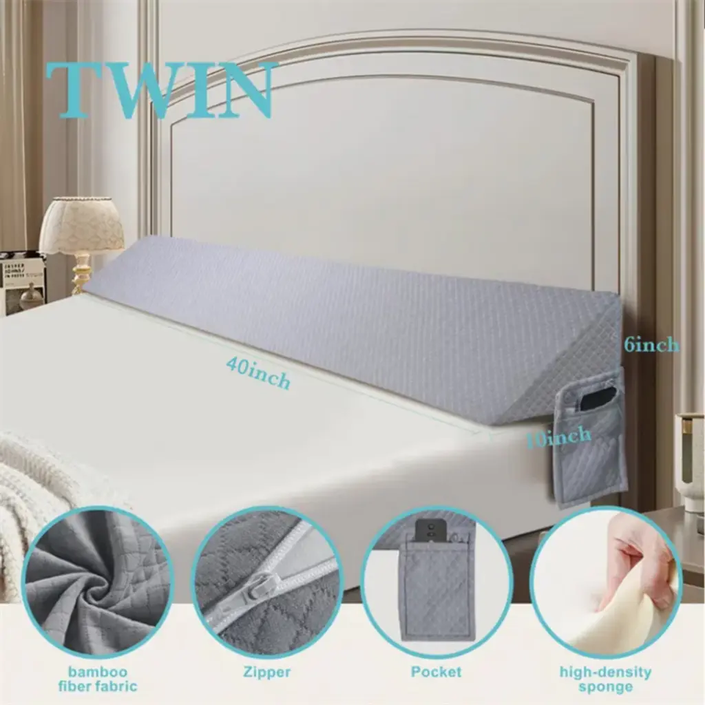 This Air Layer Wedge Pillow functions as an adjustable wedge and mattress gap filler, has two pockets for storage, a removable cover, and is machine - washable. It enhances sleep comfort by eliminating gaps, offering convenience and support for a better rest experience.
