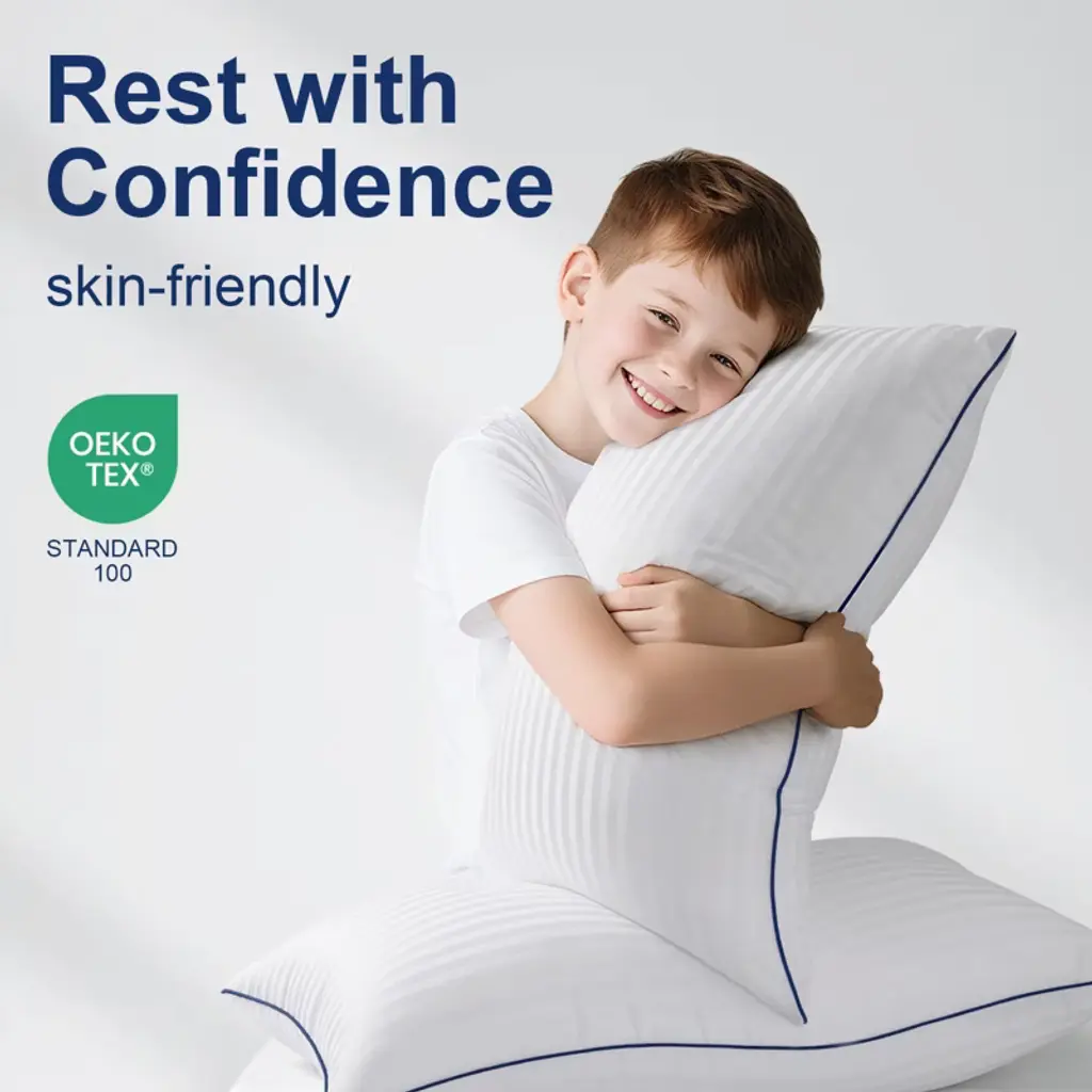 Upgrade your sleep experience with these luxurious pillows. They are filled with high - quality down alternative fibers, offering the perfect blend of softness and support. Whether you're a back, stomach, or side sleeper, these pillows are designed to meet your needs. The 7D hollow fiber filling is breathable and highly elastic, preventing flattening and clumping, so you can enjoy a plump pillow all night long. Certified to the OEKO - TEX Standard, they are skin - friendly and safe. The 2 - pack pillows are shipped in a vacuum seal and will fluff up once opened. For easy care, simply machine wash in cold water and tumble dry on low heat. These pillows are not only great for bedrooms but also suitable for guest rooms, college dorms, or even as sofa cushions, adding comfort to every corner of your life.