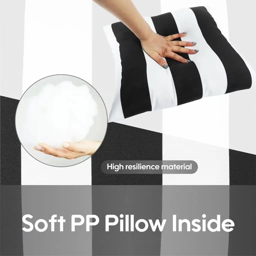 Kumasinova 18" Pillows Standard Size Set Of 2,waterproof Fade Resistant Bed Pillows For Garden&poolside,decorative Pillows For Bed,black White Strpie