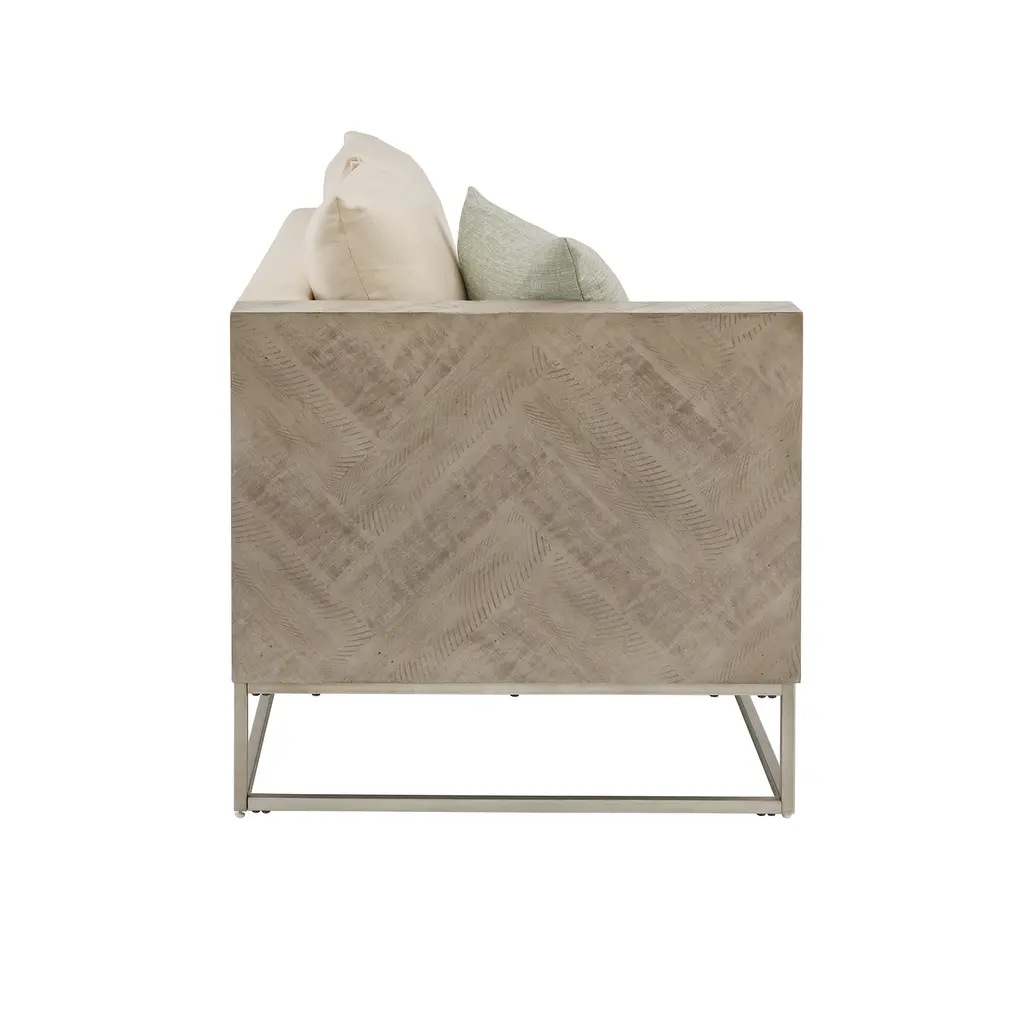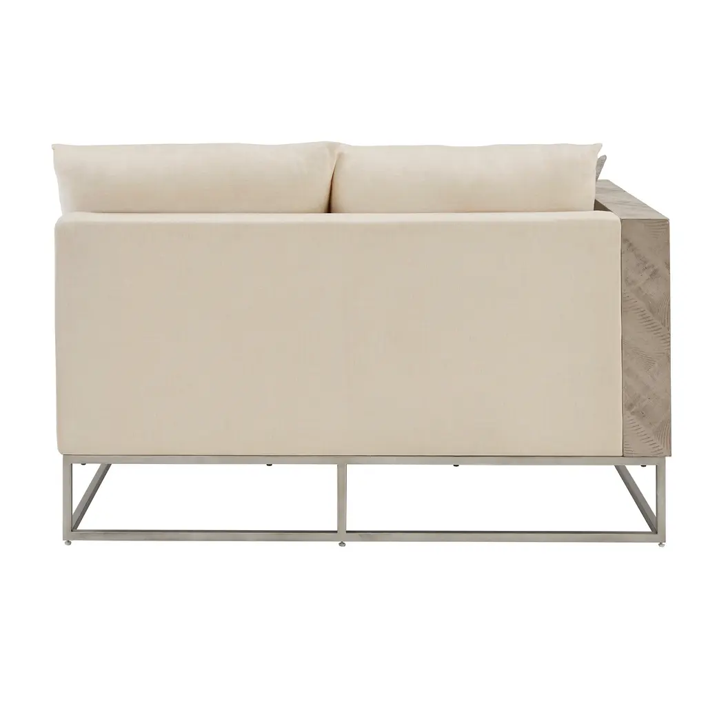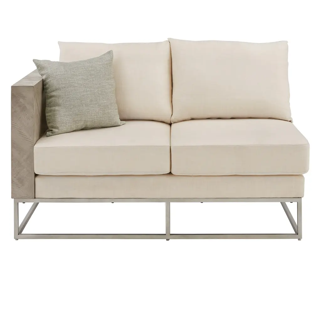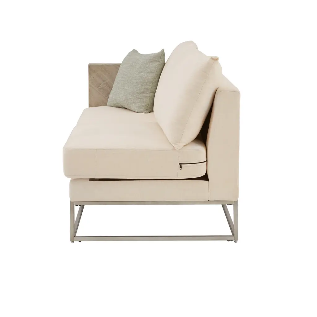 Elevate your home decor with the Modern Upholstered Square Arm Sofa, designed for the contemporary living space. The sofa's arms, crafted from acacia veneer with a herringbone pattern, boast a driftwood finish that exudes sophistication. This piece is supported by sturdy iron tube bases in a chic silver finish, which is durable and stylish. Its beige fabric upholstery ensures a timeless look, making it a versatile addition to any room. Available in left or right-arm configurations or as a sectional with a matching end table, this sofa adapts to your needs while enhancing your home's aesthetic appeal.Shop the Lecce CollectionFeatures:Dimensions:Assembly Required.iNSPIRE Q Modern blends Mid Century aesthetics with contemporary elements for beautiful pieces that will complement your modern lifestyle. Clean lines and straightforward materials like wood finishes and sleek, metal accents bring to life the dynamic, vintage ambiance of this collection. Embrace the elegance of simplicity with iQ Modern.At iNSPIRE Q®, our designer-curated lifestyles reflect current trends and timeless essentials, giving you the know-how to achieve your vision. With diverse style inspirations to choose from, you'll be able to find the one that speaks to you - or mix and match across collections for a style that's all your own.Whether you're cool and contemporary, retro, free-spirited, vintage, or classic, iNSPIRE Q® is here to help you achieve the home of your dreams, every step of the way. Click here to explore the five style inspirations: iQ Bold, iQ Modern, iQ Classic, iQ Artisan, and iQ Junior.