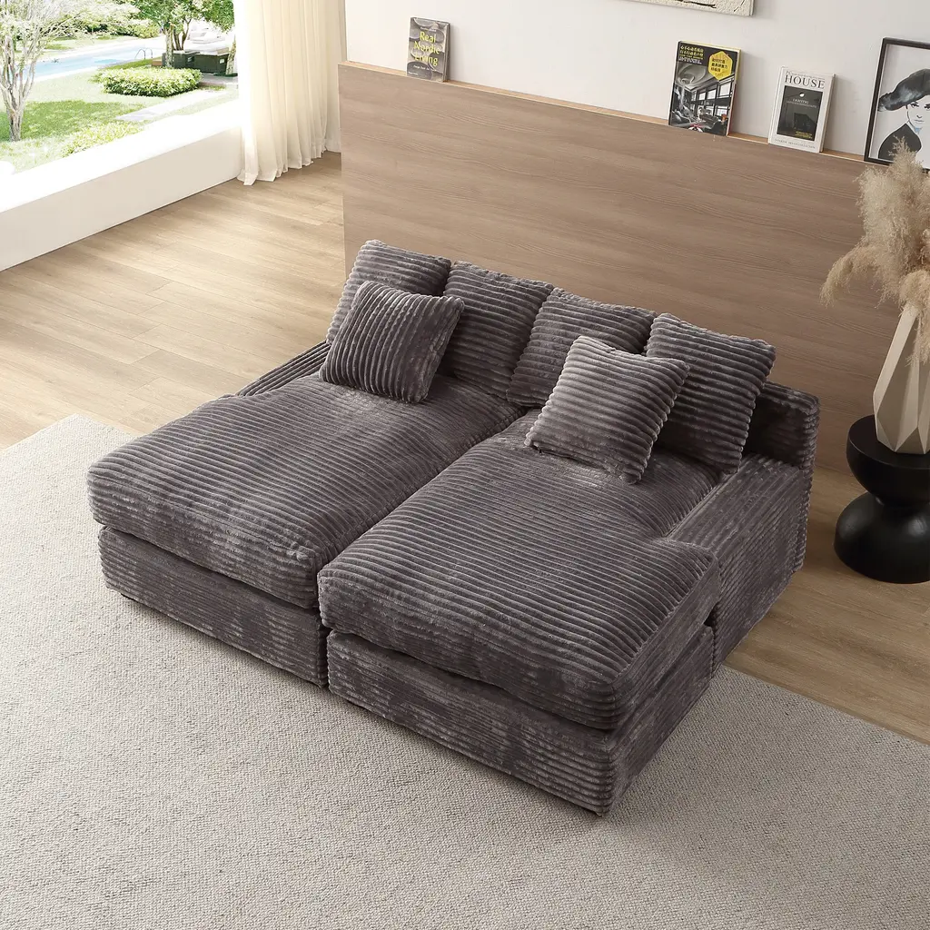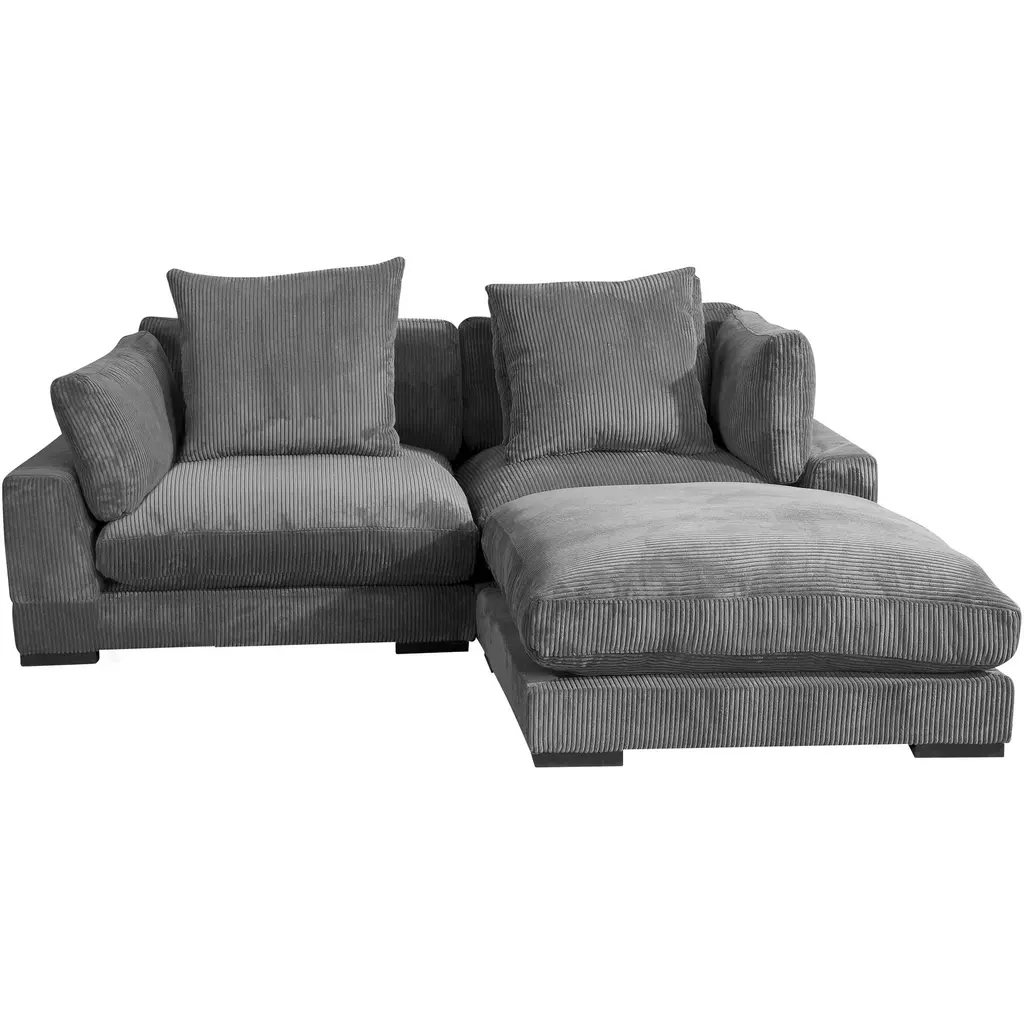This modern loveseat with ottoman offers the ultimate blend of comfort and convenience, making it perfect for relaxing or entertaining. Upholstered in soft, 100% polyester fabric, the loveseat features built-in tech, including a wireless charging device, two USB ports, and an intelligent Bluetooth speaker, allowing you to charge your devices and enjoy your favorite music with ease. The sleek black solid rubber wood legs and channel-stitched design add a stylish touch, while the included ottoman enhances its versatility—whether as a bedtail stool, coffee table, or footrest.Features:Product Dimensions: