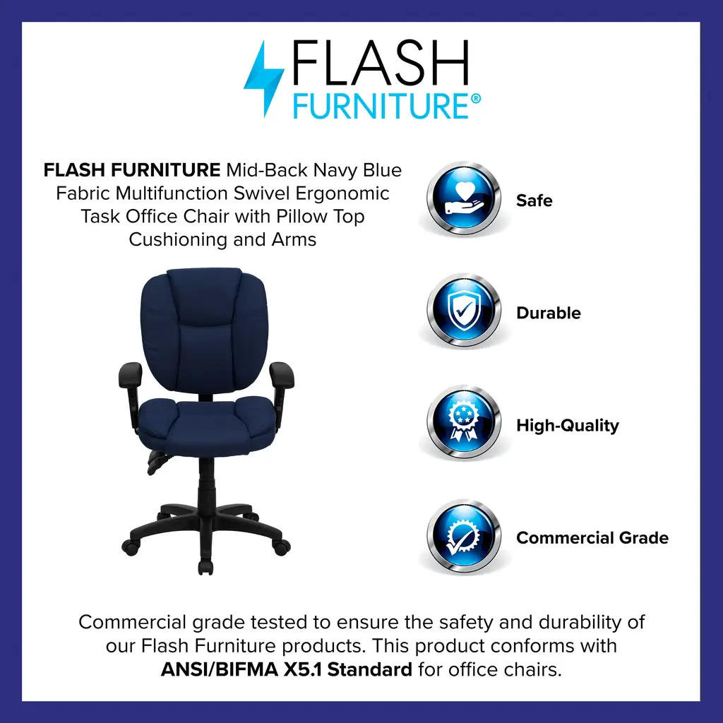 Mid-Back Multifunction Swivel Ergonomic Task Office Chair With Pillow Top Cushioning And Adjustable Arms