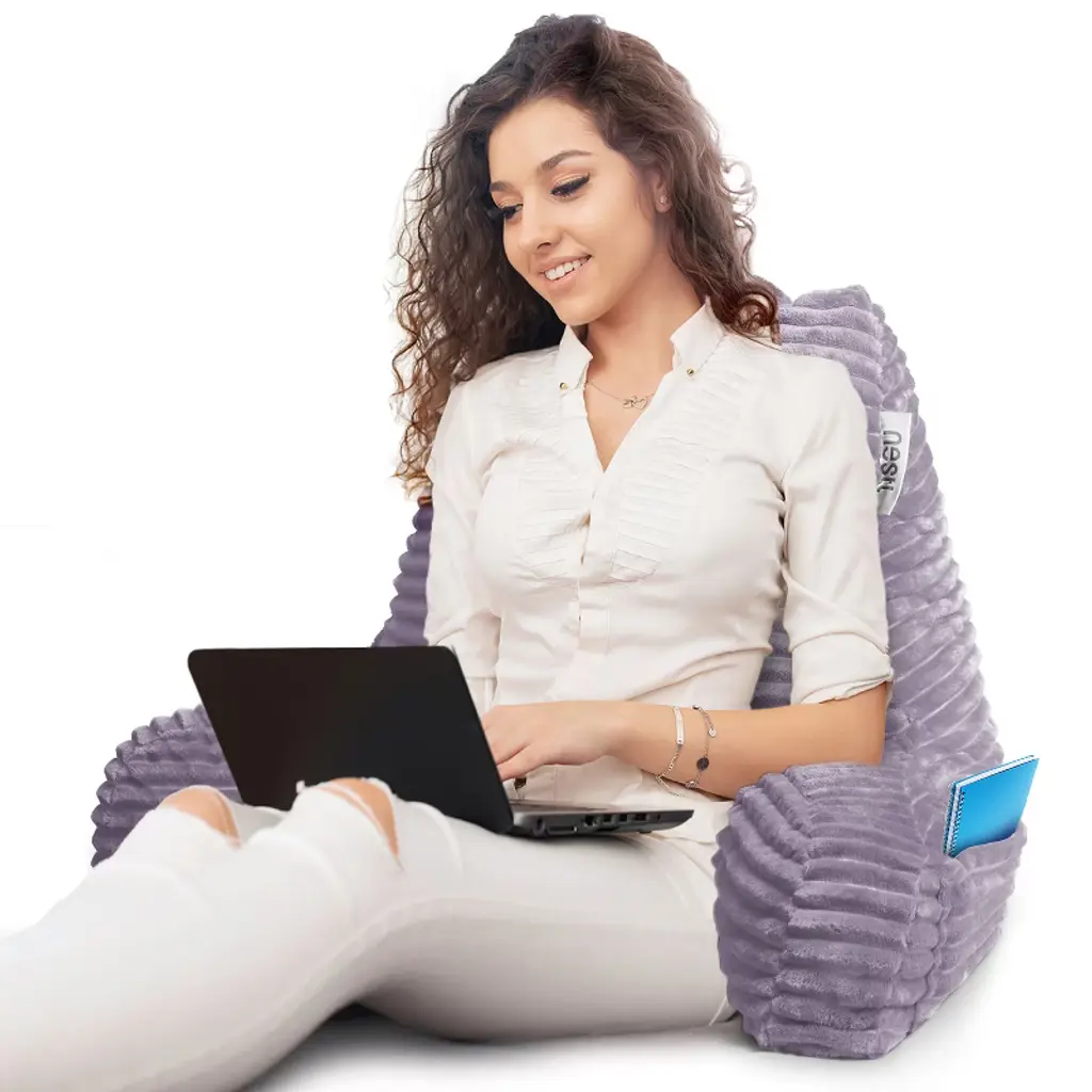 Nestl Reading Pillow For Bed With Fleece Blanket, Standard Bed Pillows For Sitting Up In Bed, Dusty Purple Bed Rest Pillow