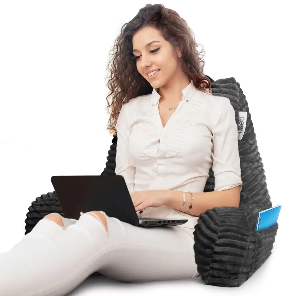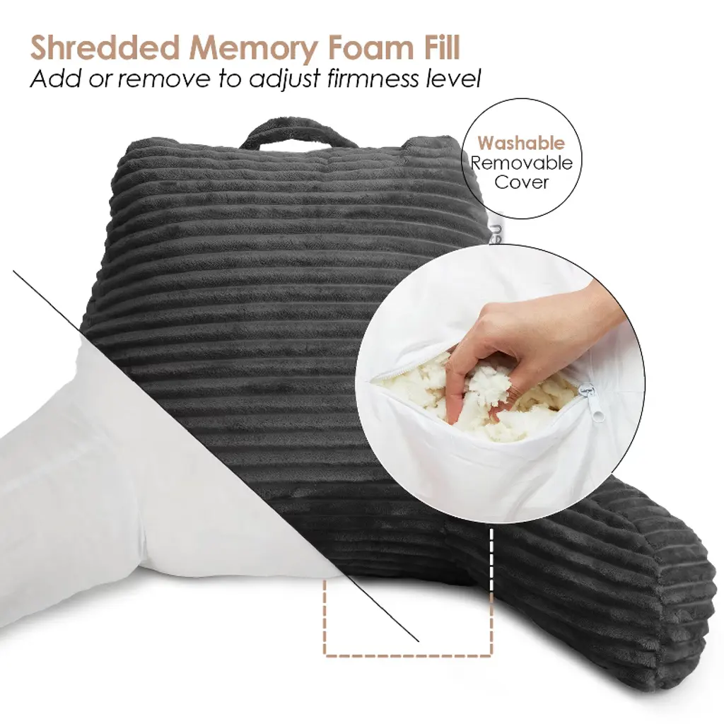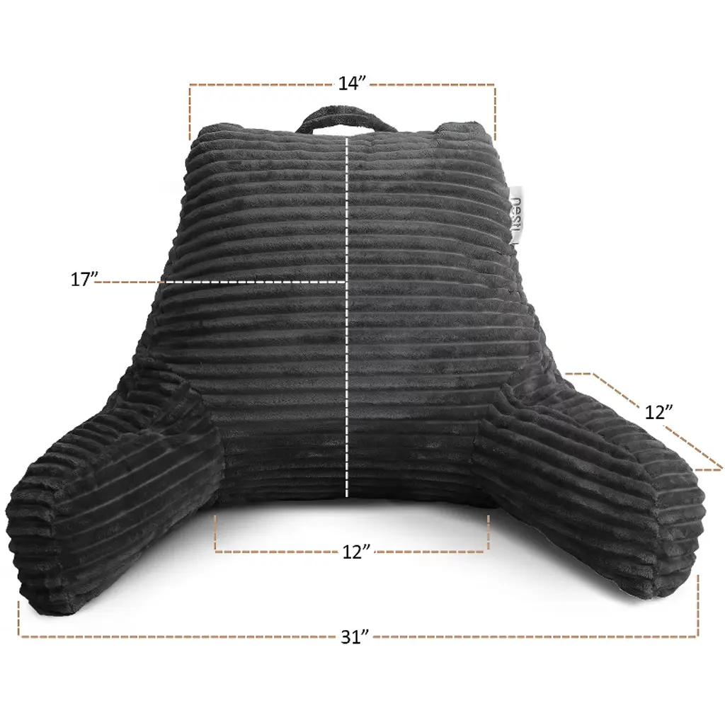 Nestl Reading Pillow For Bed With Fleece Blanket, Standard Bed Pillows For Sitting Up In Bed, Gray Bed Rest Pillow
