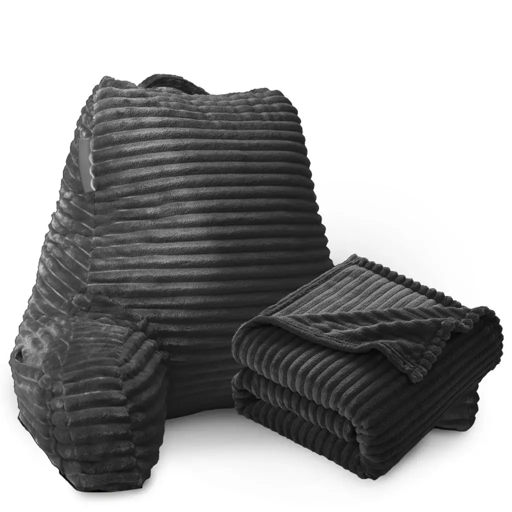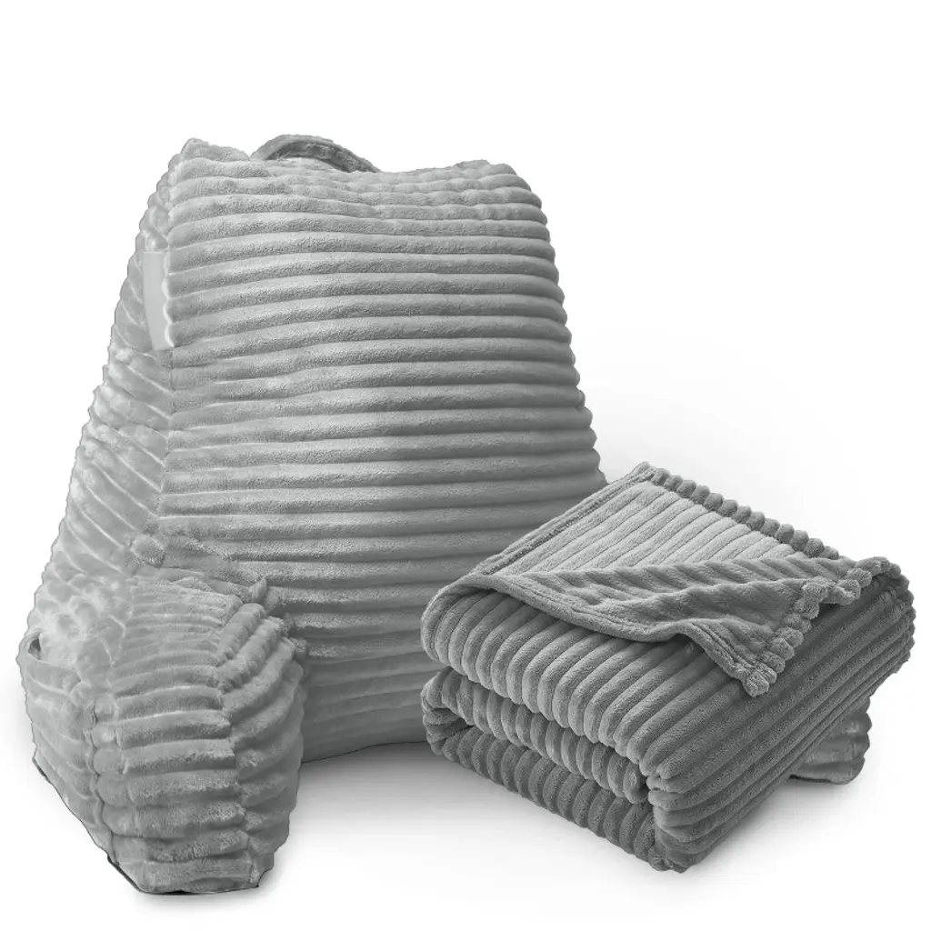 Create the ultimate cozy retreat with the Nestl Reading Pillow and Cut Plush Fleece Blanket Combo, designed for comfort, relaxation, and everyday lounging. Whether you're curled up with a book, watching your favorite show, or simply unwinding, this duo offers everything you need for a warm, supportive, and luxurious experience. The Nestl Reading Pillow features a sturdy backrest, cushioned arms, and a core of shredded memory foam that molds to your body for personalized support. Perfect for sitting up in bed, relaxing on the couch, or lounging on the floor, it’s covered in soft, cut plush fabric for an ultra-cozy feel. Handy side pockets keep your essentials like books, remotes, or snacks within easy reach, making it ideal for reading, TV time, or just taking it easy. Paired with the Nestl Cut Plush Fleece Blanket, this combo takes comfort to the next level. The blanket is made from luxuriously soft, lightweight fleece with a rich, velvety texture that keeps you warm without overheating. available in a variety of elegant colors, it’s perfect for year-round use, whether draped over your bed, sofa, or wrapped around you during your downtime. Together, the Nestl Reading Pillow and Plush Fleece Blanket set creates the perfect environment for comfort, support, and relaxation, your new favorite way to unwind at home.