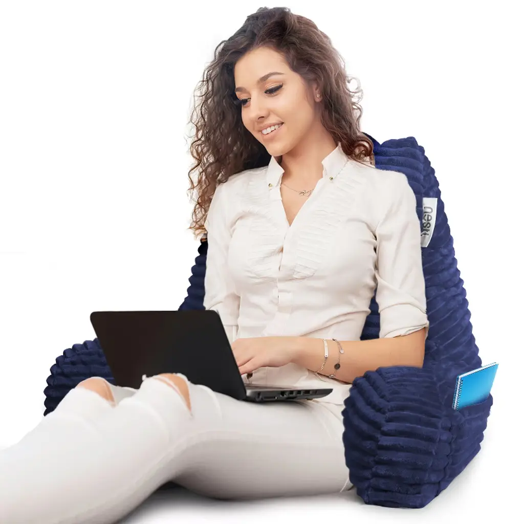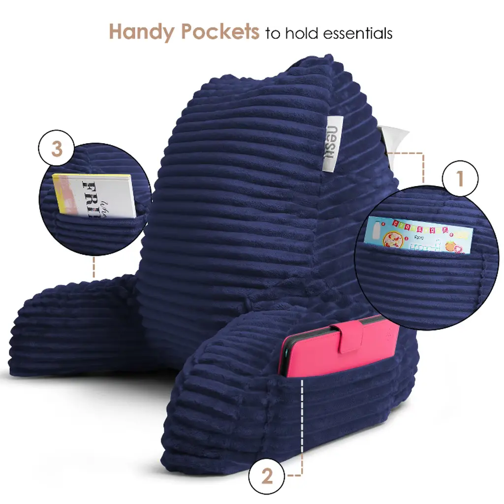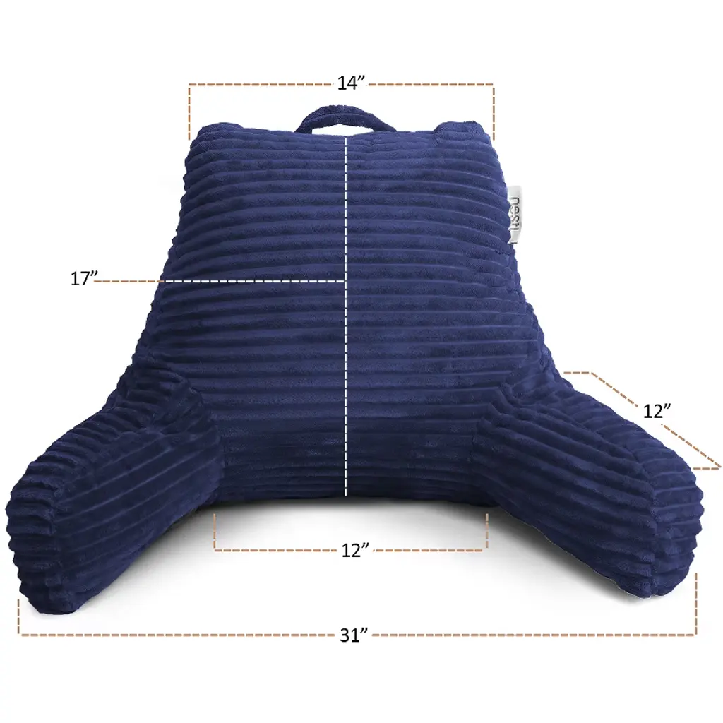 Nestl Reading Pillow For Bed With Fleece Blanket, Standard Bed Pillows For Sitting Up In Bed, Navy Bed Rest Pillow