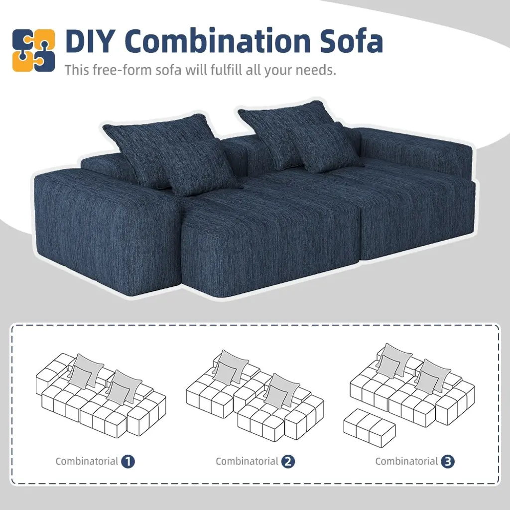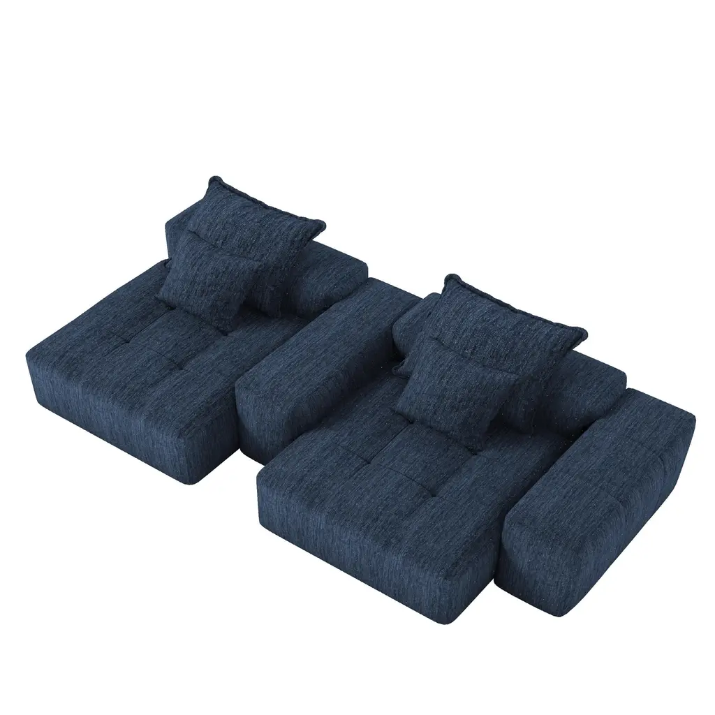 Oversized Modular Sectional Sofa W/ Armrest, Chenille Soft Cushion Sofa W/ 4 Pillows, 4 Pcs Diy Combination Tufted Sofa - Blue
