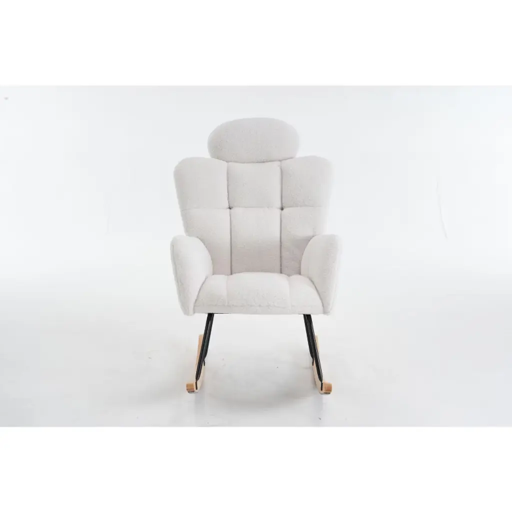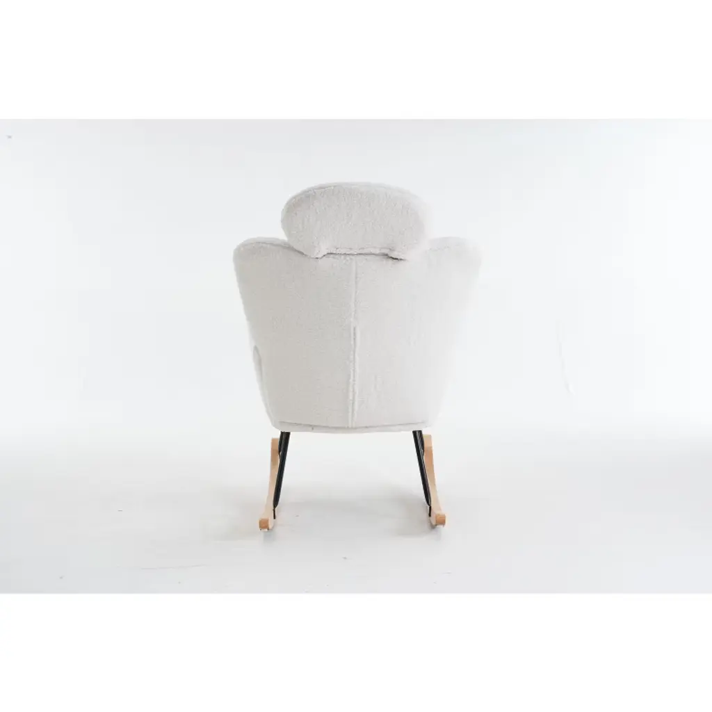 Paged Plush Teddy Fabric Accent Chair With High Back & Detachable Pillow, Cozy Rocking Armchair For Bedroom, Nursery, Living Room, Ivory