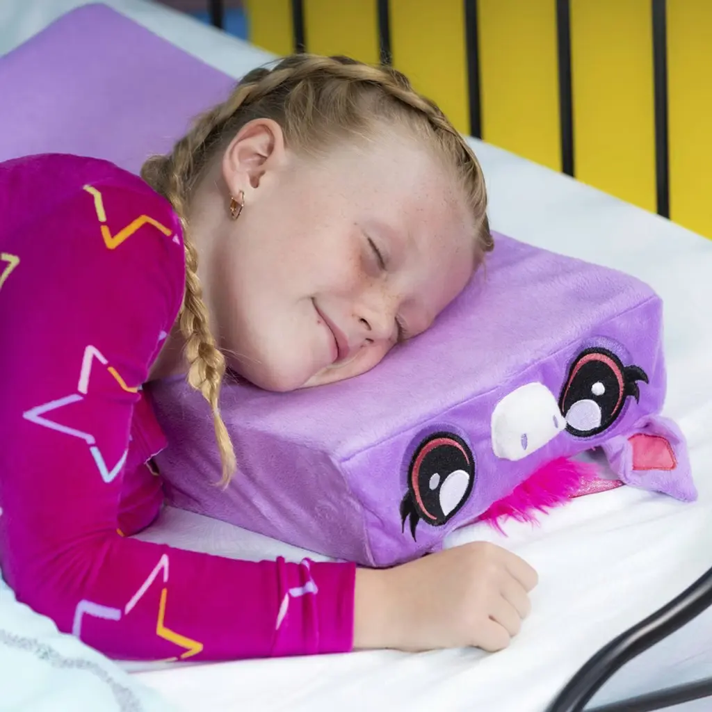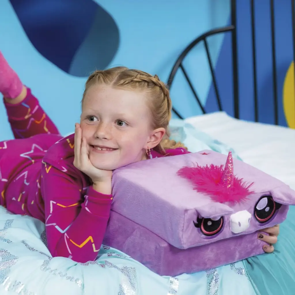 Say hello to Pillow Cube® Kid Cubes®, the playful Purple Unicorn toy by day and cozy, comfy pillow by night. Pillow Cube® Kid Cubes® are huggable, squeezable toys that are fun to play with during the day. Then at naptime or bedtime, it unfolds into a pillow. The extra soft foam core has the right amount of softness and support to help kids get a great sleep. The Pillow Cube® Kid Cubes® are great for travel, take them to sleepovers, on long drives, and on flights to help your child be entertained and rest comfortably. Play, sleep, and nap every day with Pillow Cube® Kid Cubes®!