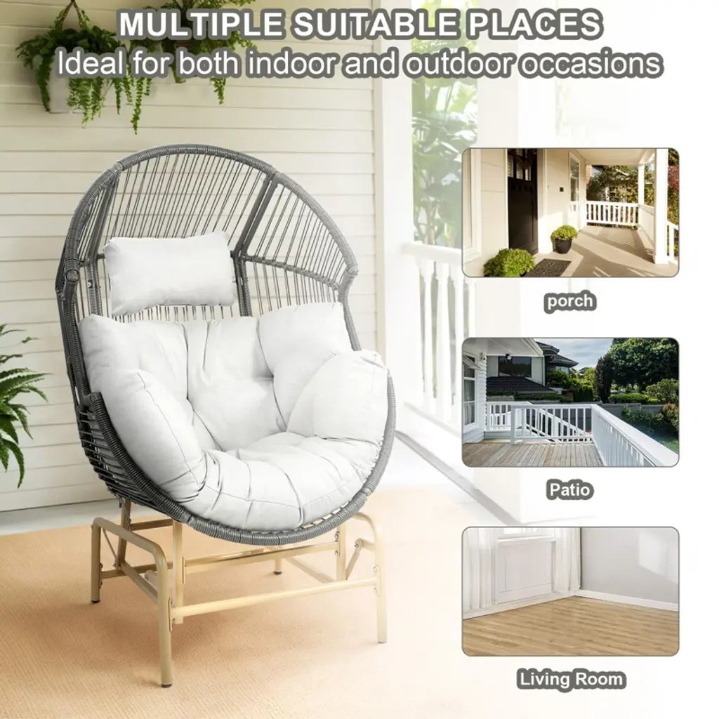 Pocassy Egg Chair Outdoor Glider Chair, All Weather Wicker Rattan Hammock Egg Chair With Head Pillow