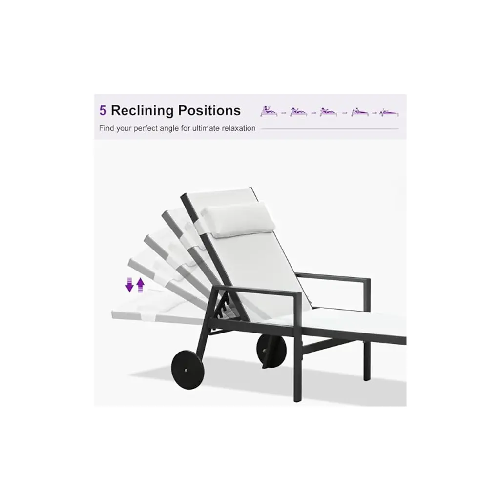 Experience outdoor luxury on your patio with PURPLE LEAF's outdoor chaise lounge chairs, the perfect addition to poolside gatherings or weekend siestas. With their modern design and superior comfort, these lounges elevate sunbathing to a stylish affair. Take advantage of the adjustable features for your perfect relaxing fit. Order today and bask in the joy of outdoor living with free home delivery from PURPLE LEAF!