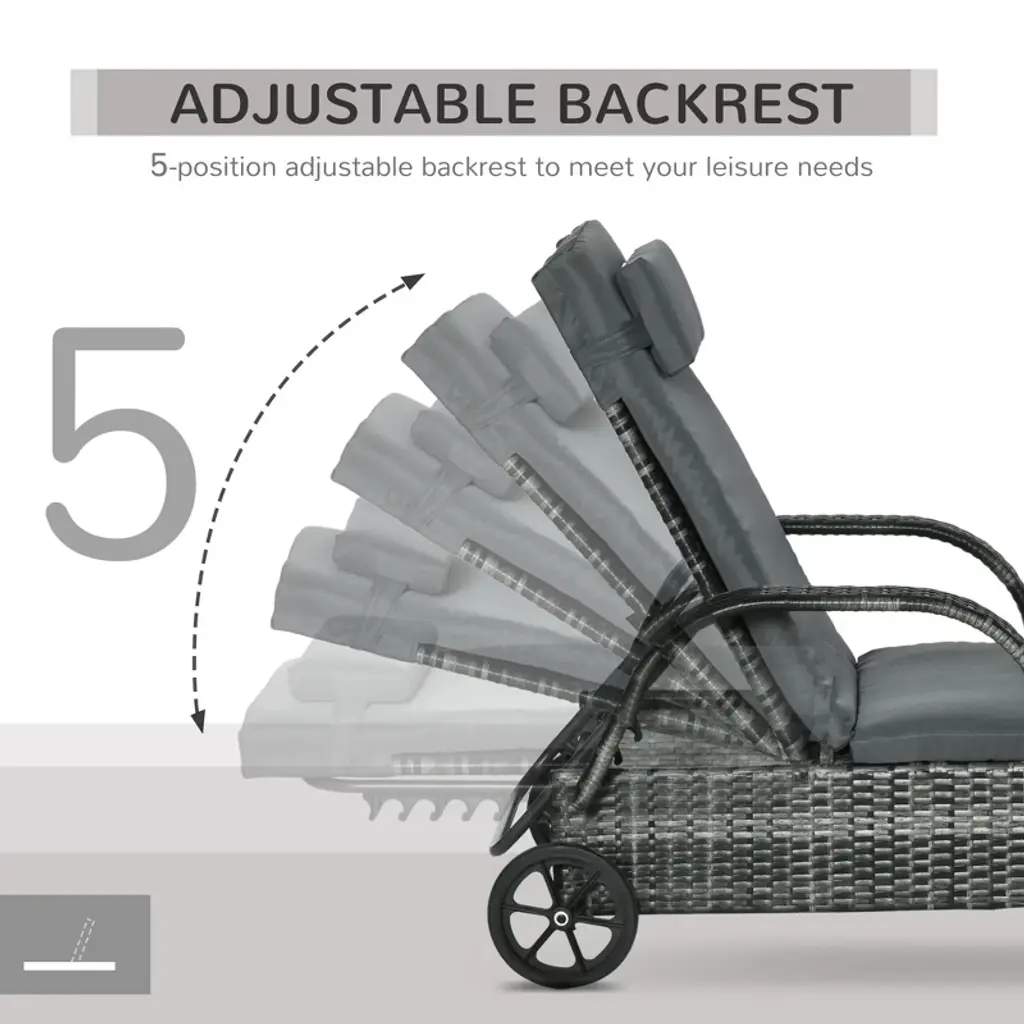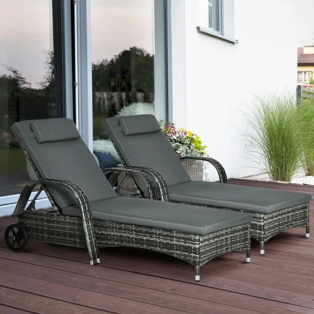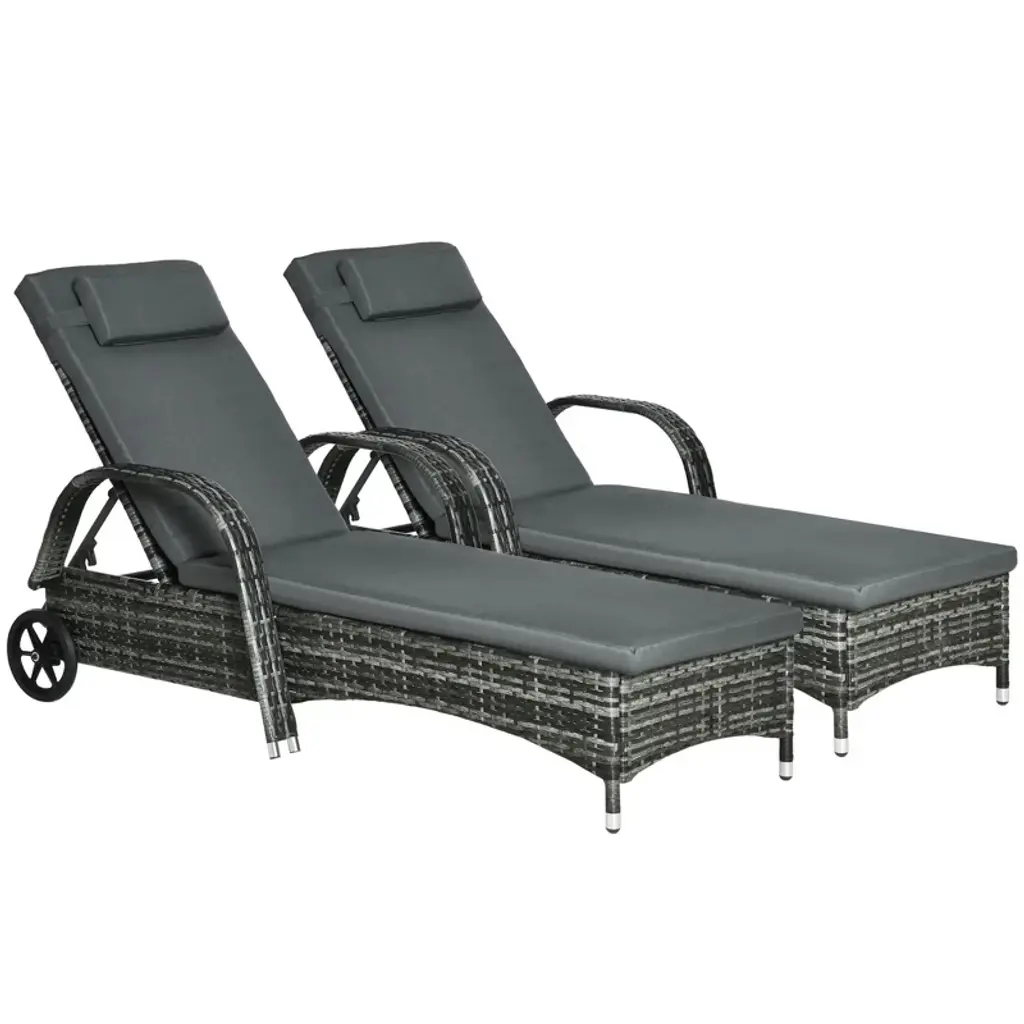 Resenkos 2-piece Reclining Chaise Lounge Chairs - Rolling Comfort Outdoor Chairs With Cushions, Pillows, Headrests & Armrests, Mixed Gray, Charcoal