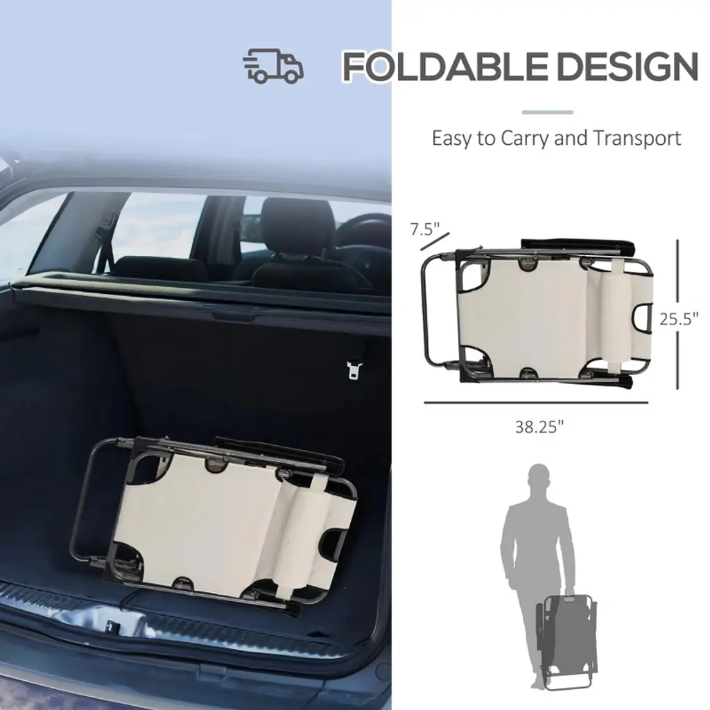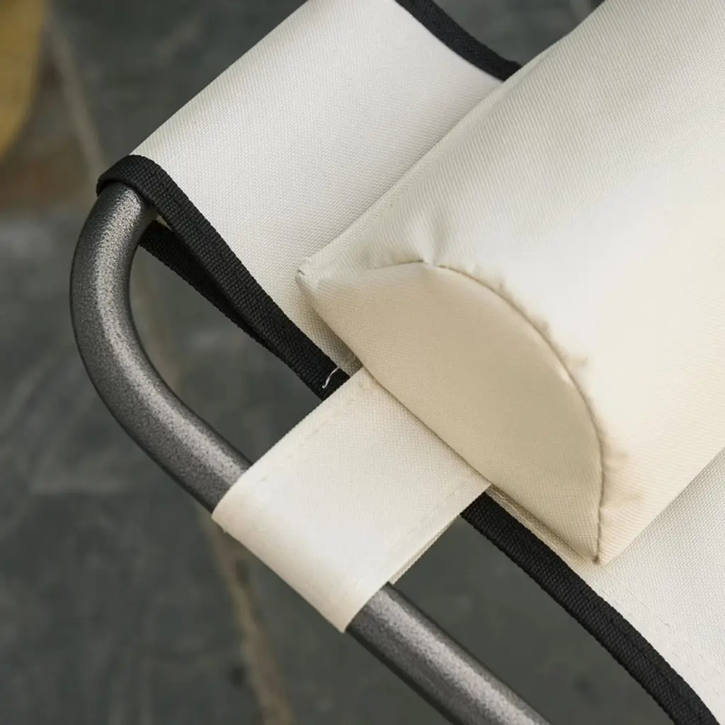 Resenkos Folding Chaise Lounge Chair For Outside, 2-in-1 Tanning Chair With Pillow & Pocket, Adjustable Pool Chair, Cream White