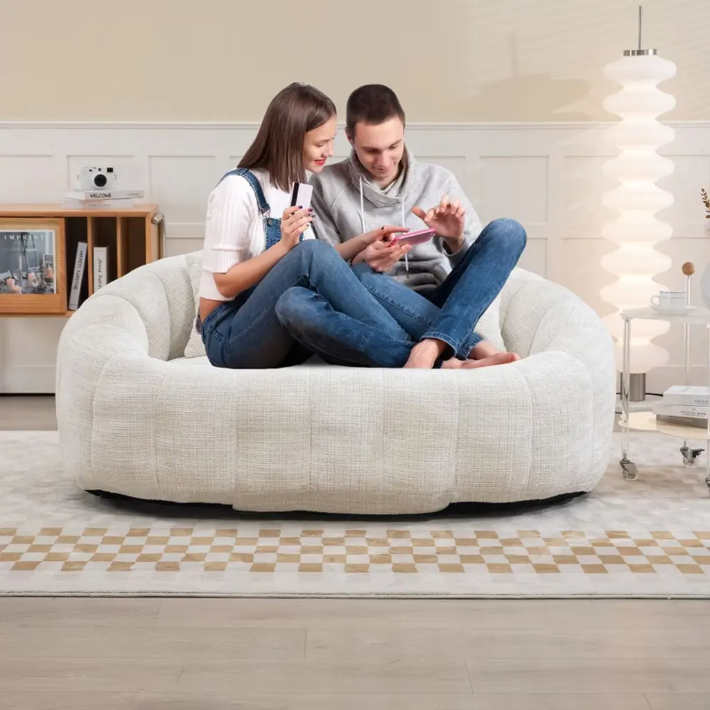 Sapphtopaz Bean Bag Chair With High Density Foam, Lazy Loveseat With 2 Pillows, Bean Bag Chairs For Adults And Kids, Couches For Living Room, Beige
