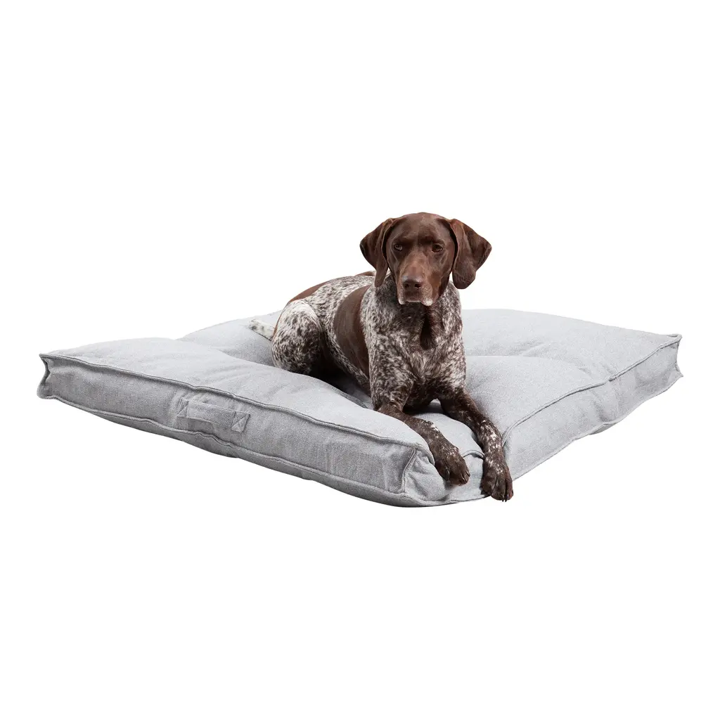 The Happy Hounds Scout Dog Bed is a round, pillow style bed featuring durable, box-style edges finished with a contrast decorative cording. Its heavy-duty microfiber fabric cover is removable and machine washable making it easy to keep your furry friend's bed clean and fresh. The bed is completely reversible, and features a hidden zipper closure. This bed is generously filled with a 100% post-consumer recycled poly-fiber fill. Fabric shell is made in China, bed is filled and finished in the USA. Bed dimensions can be +/- 2 inches. Please note product will arrive in a slightly compressed state; please allow a few days for product to expand to final size listed in description.Heavy-duty microfiber fabric is water and stain-resistantRemovable cover is machine washableReversible designRound design ideal for dogs who like to curl up while sleeping