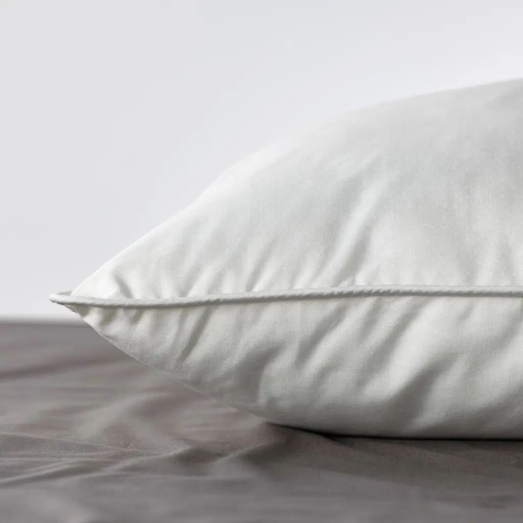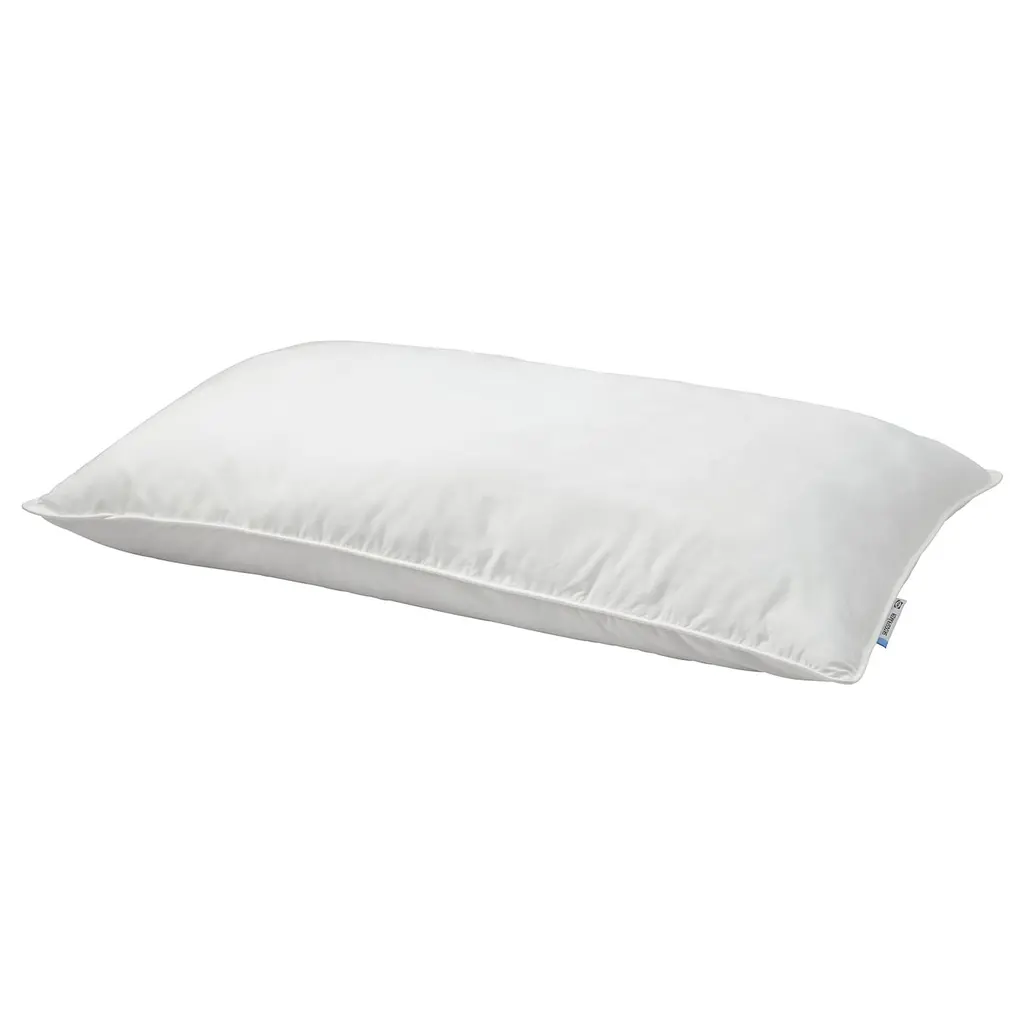 SKOGSFRÄKEN Pillow, low Queen. A low, easy-care pillow with a cotton and lyocell blend fabric, filled with hollow fibers from recycled sources. You get a dry and comfortable sleeping environment since the lyocell/cotton fabric breathes well, which helps air to circulate and moisture to evaporate.