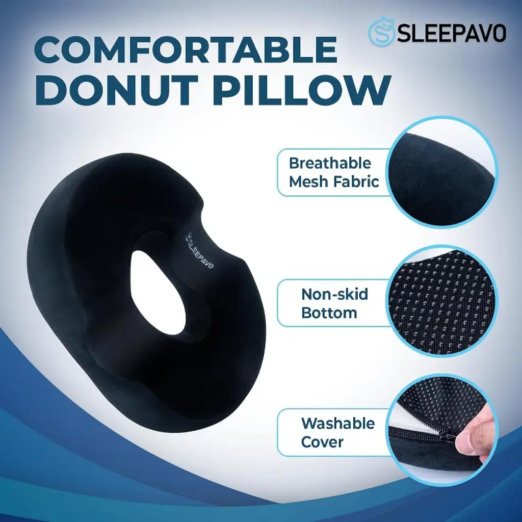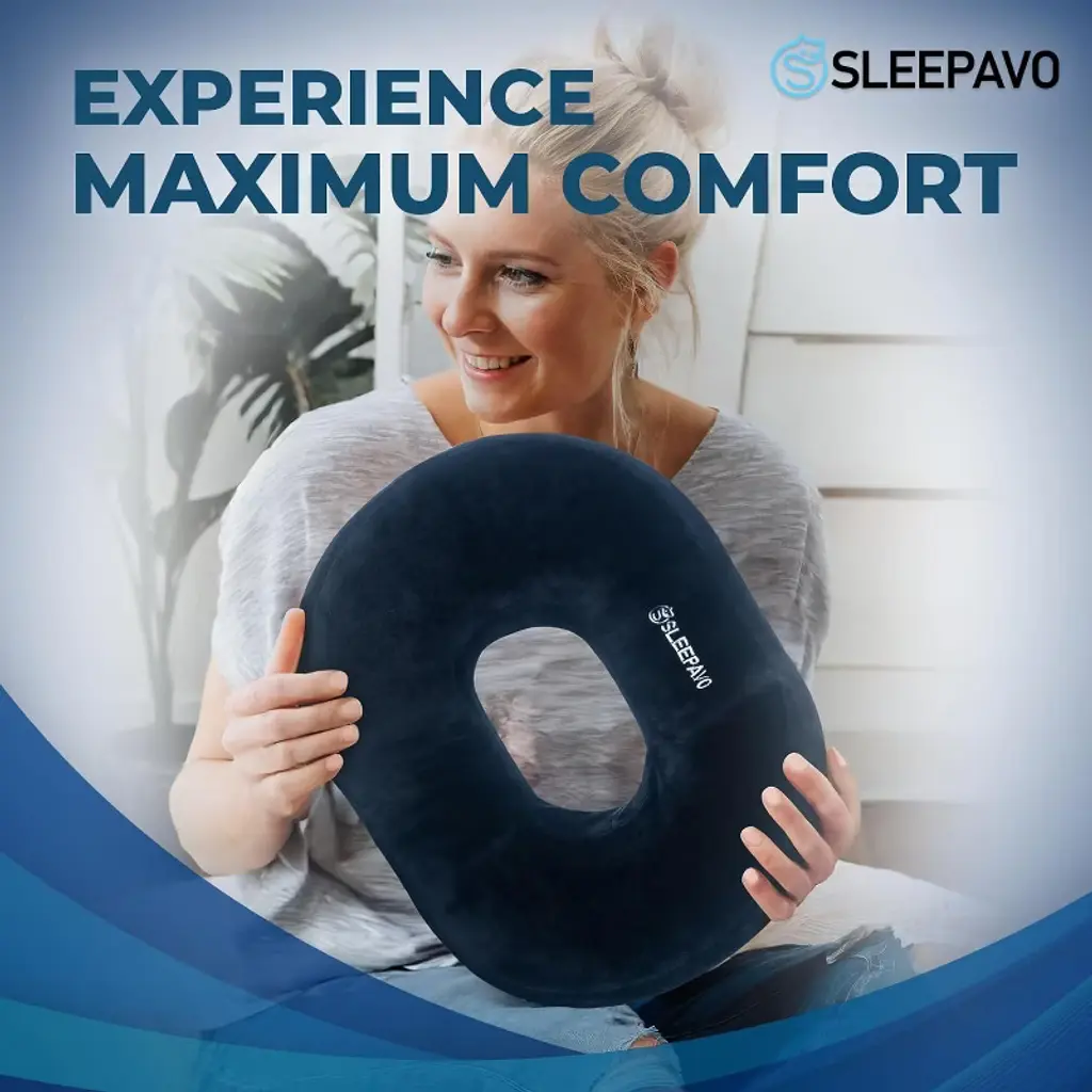 Sleepavo Butt Donut Pillow For Tailbone Pain Relief Cushion - Hemorrhoid Pillows - Sitting Butt Pillow For Office Chair - Sitting Donut Seat Cushion