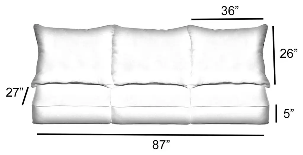 Soak up the sunshine this summer with the help of this cozy sofa pillow and cushion set! Featuring a timeless solid fabric in a rich, blue hue, this pillow and cushion set will elevate your space and provide so much more comfort for you and your guests! Crafted out of a performance material right here in North America, this set it built to withstand sun, stains and weather so that you can enjoy relax worry-free! • Ideal for casual indoor and outdoor use• Includes three (3) back pillows and three (3) seat cushions• Cushion cover can be removed for easy cleaning. Pillow cover is not removable.• Available in a variety of sizes and colors to ensure that you find the perfect match for your furniture• Pillows and cushions only. Furniture not included.• • Made in North America•
