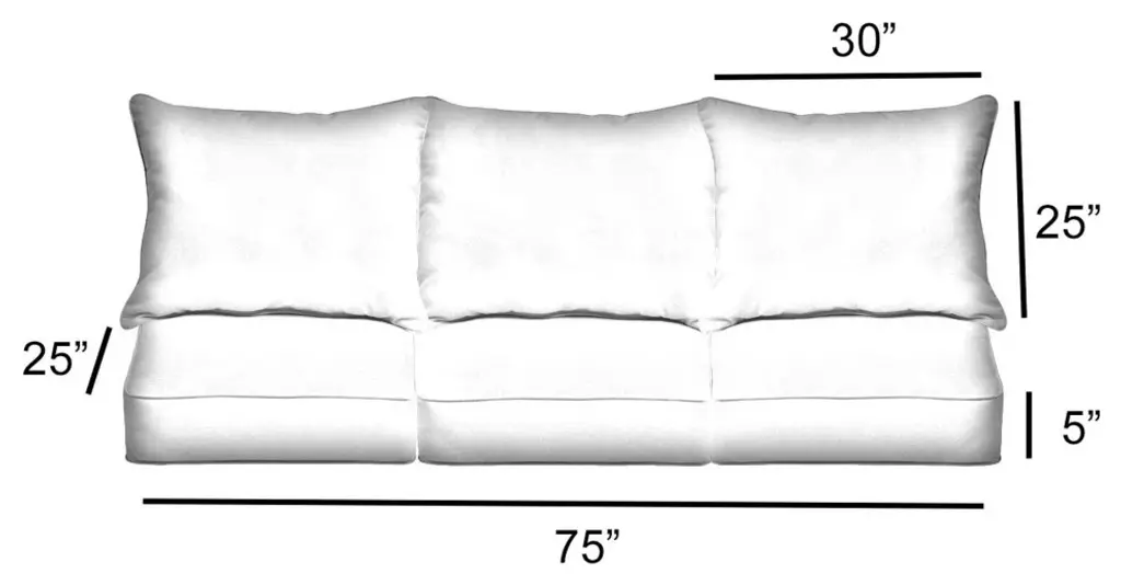 Soak up the sunshine this summer with the help of this cozy sofa pillow and cushion set! Featuring a timeless solid fabric in a rich, blue hue, this pillow and cushion set will elevate your space and provide so much more comfort for you and your guests! Crafted out of a performance material right here in North America, this set it built to withstand sun, stains and weather so that you can enjoy relax worry-free! • Ideal for casual indoor and outdoor use• Includes three (3) back pillows and three (3) seat cushions• Cushion cover can be removed for easy cleaning. Pillow cover is not removable.• Available in a variety of sizes and colors to ensure that you find the perfect match for your furniture• Pillows and cushions only. Furniture not included.• • Made in North America•