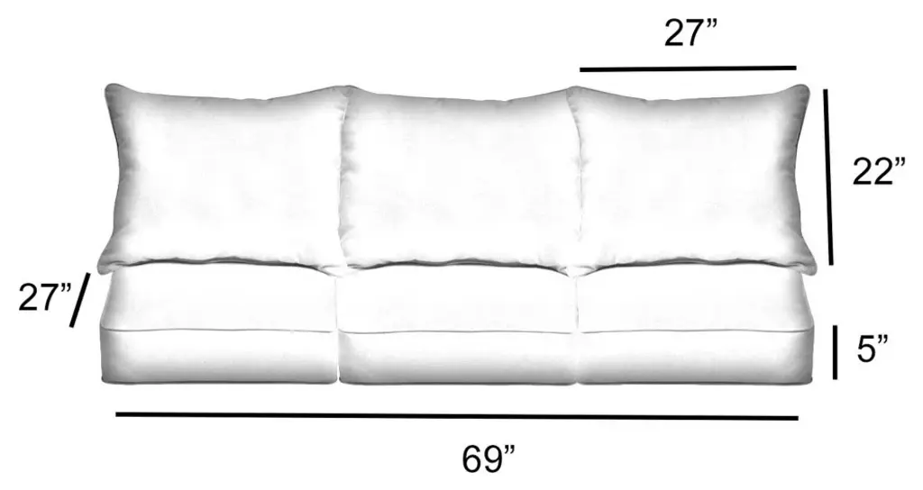 Soak up the sunshine this summer with the help of this cozy sofa pillow and cushion set! Featuring a timeless solid fabric in a rich, blue hue, this pillow and cushion set will elevate your space and provide so much more comfort for you and your guests! Crafted out of a performance material right here in North America, this set it built to withstand sun, stains and weather so that you can enjoy relax worry-free! • Ideal for casual indoor and outdoor use• Includes three (3) back pillows and three (3) seat cushions• Cushion cover can be removed for easy cleaning. Pillow cover is not removable.• Available in a variety of sizes and colors to ensure that you find the perfect match for your furniture• Pillows and cushions only. Furniture not included.• • Made in North America•