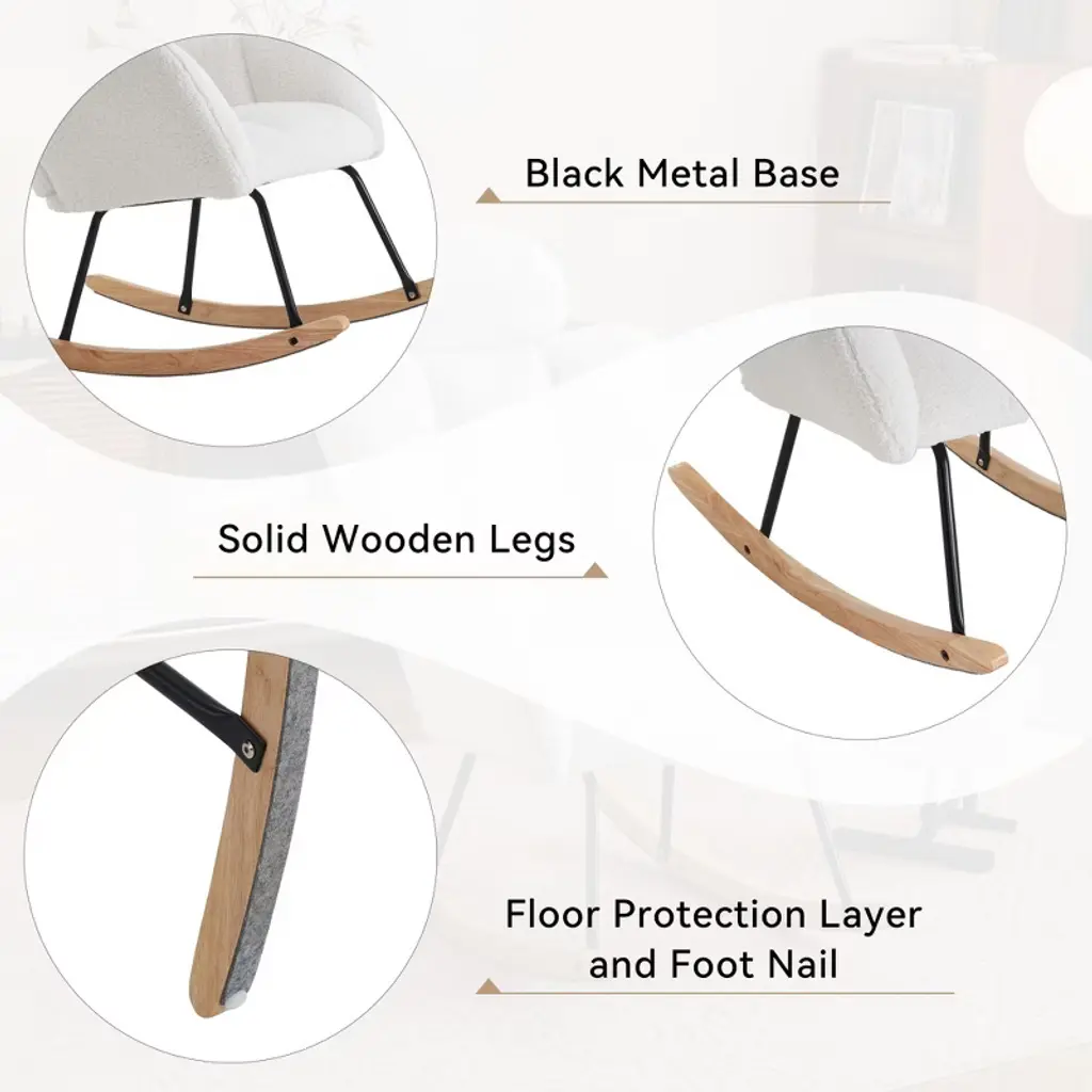 Elevate your nursery or living space with our modern Teddy Fabric Upholstered Rocking Glider Chair. This accent armchair boasts a padded seat and high backrest for ultimate comfort, accompanied by a plush pillow for added support. The soft teddy fabric adds a touch of warmth and luxury, making it perfect for cozying up with your little one or relaxing after a long day. The smooth gliding motion provides a soothing experience, ideal for nursing, reading, or simply unwinding. With its stylish design and sturdy construction, this chair is a versatile addition to any bedroom or living room, offering both functionality and aesthetic appeal.
