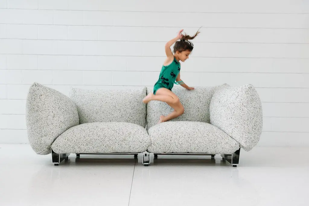 Tasking ourselves to design a robust sofa that could standup against two small children yet look simple and elegant ina family home, we developed the Pillow Sofa. It’s laser cut, press broken aluminum frame is assembled simply with its feet as fasteners. The rubber feet suspend the frame slightly off the ground, and provide the chassis for which to slip its overstuffed pillow cushions over. Easily removed for cleaning, the pillows form an elegant yet comfortable seat.Modular design, can be expanded to as many seats as you'd like.Available in two upholstery collections designed by Raf Simons for Kvadrat, as well as solid bouclé upholstery by Kvadrat. Can also be customized with leather from our standard leather collection, and open to COM as well.