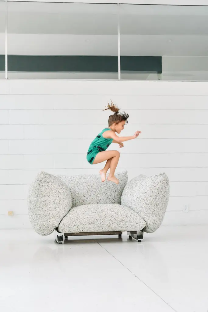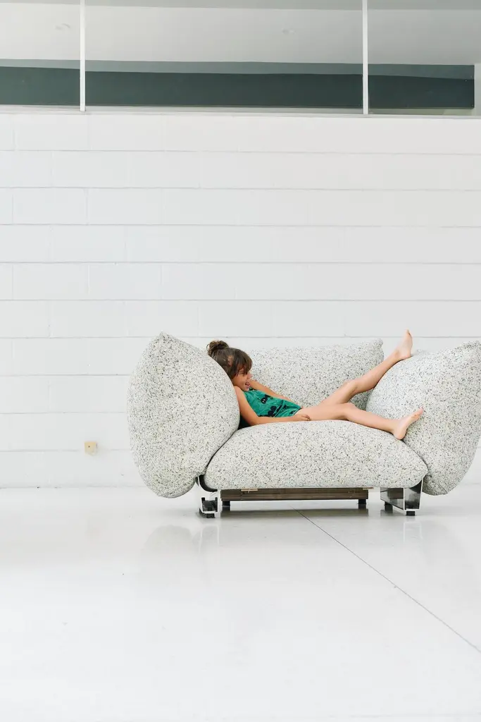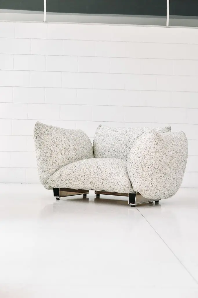 Tasking ourselves to design a robust sofa that could standup against two small children yet look simple and elegant ina family home, we developed the Pillow Sofa. It’s laser cut, press broken aluminum frame is assembled simply with its feet as fasteners. The rubber feet suspend the frame slightly off the ground, and provide the chassis for which to slip its overstuffed pillow cushions over. Easily removed for cleaning, the pillows form an elegant yet comfortable seat.Modular design, can be expanded to as many seats as you'd like.Available in two upholstery collections designed by Raf Simons for Kvadrat, as well as solid bouclé upholstery by Kvadrat. Can also be customized with leather from our standard leather collection, and open to COM as well.