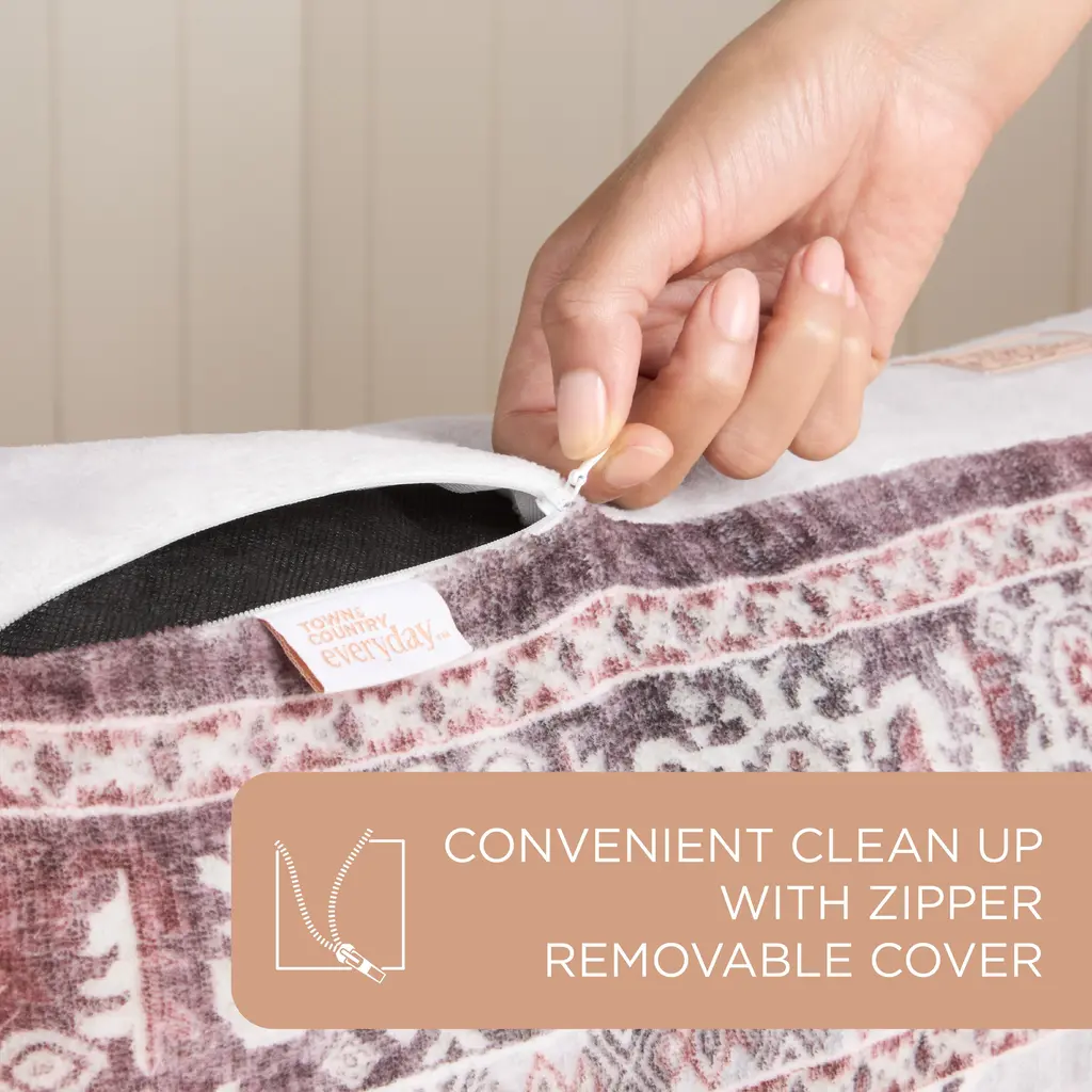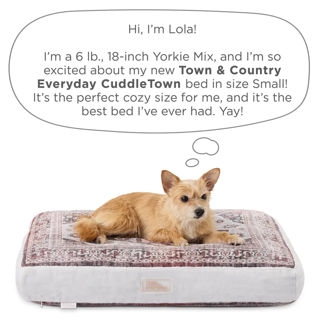 Treat your pet to the ultimate comfort with the Town & Country Everyday CuddleTown Medallion Floor Pillow Crate Mat Pet Bed. This cozy haven is made with a velvety soft, reversible design that surrounds your furry friend in soothing comfort. With a removable, machine-washable cover, keeping it fresh and clean is a breeze. Plus, the water-repellent fabric ensures it stays in great shape for a long time. Ideal for pets of all sizes, this stylish and functional bed is a perfect addition to any pet lover's home. Standard 100 by Oeko-Tex Certified.