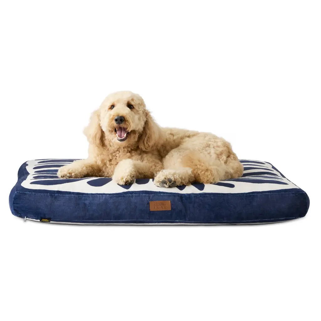 Town & Country Luxe Cuddletown Matisse Pillow Crate Mat Reversible Pet Bed Navy Blue For Large Dogs - M: 36"x28"x4" - Navy Blue
