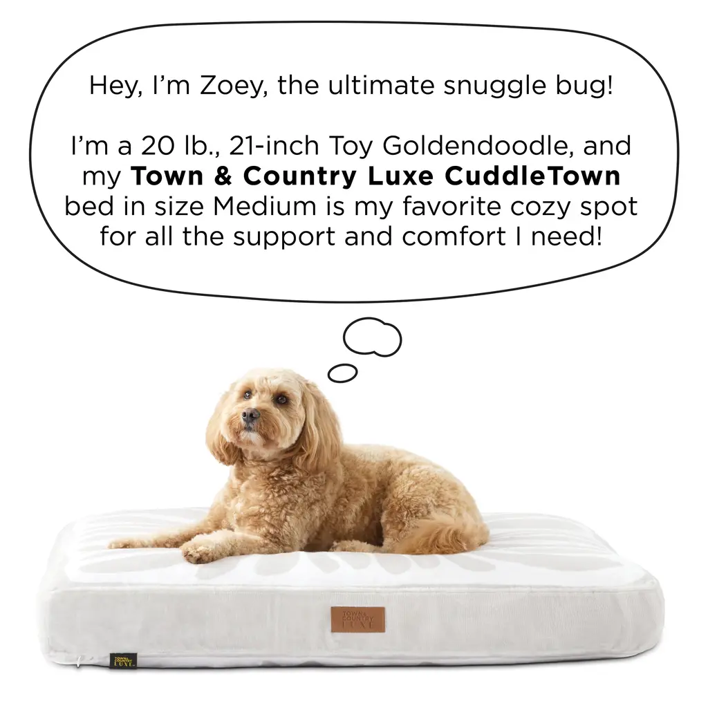 Pamper your pet with the Town & Country Luxe CuddleTown Matisse Floor Pillow Crate Mat Pet Bed, designed for ultimate comfort and relaxation. Featuring a reversible design and velvety soft texture with calming cushioned interior, this bed provides a soothing retreat for your furry friend. The removable, machine-washable cover ensures easy maintenance, and provides water repellent protection for long lasting use. Perfect for pets of all sizes, this stylish and functional floor pillow bed is a must-have for any pet lover. Standard 100 by Oeko-Tex Certified.