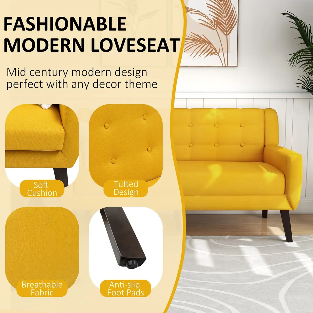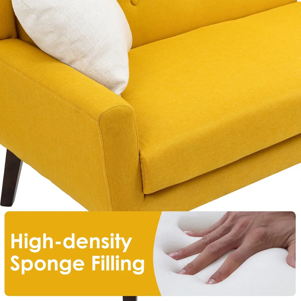 Tufted Linen/cotton 2-Seater Sofa With Pillows - Yellow