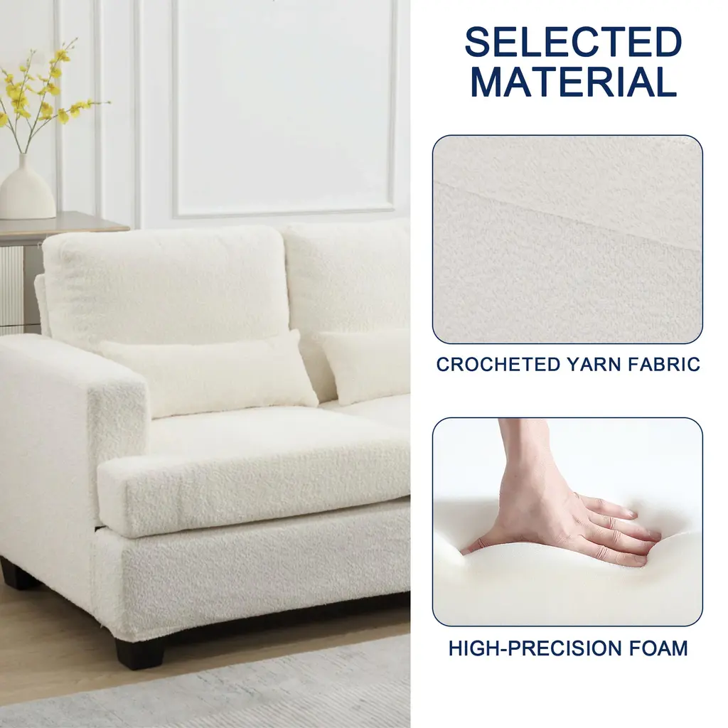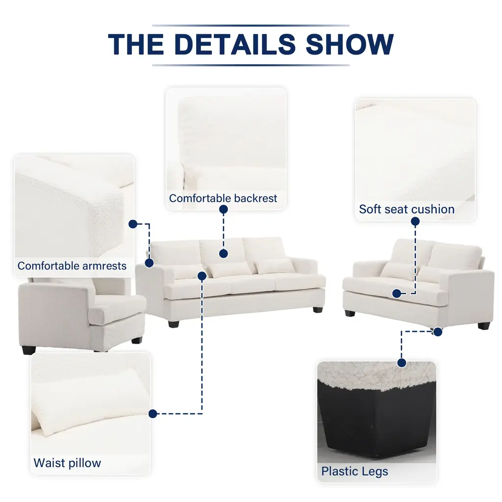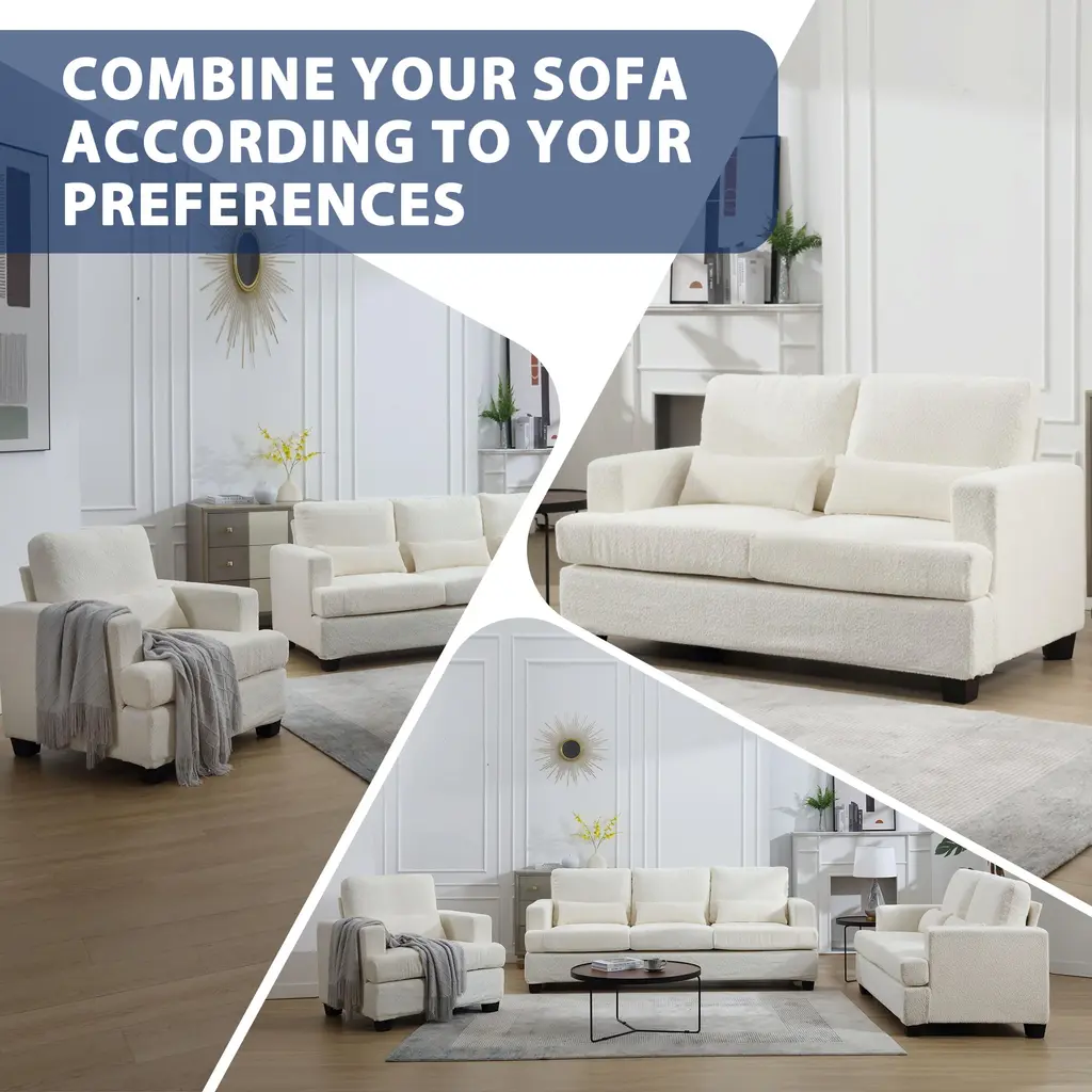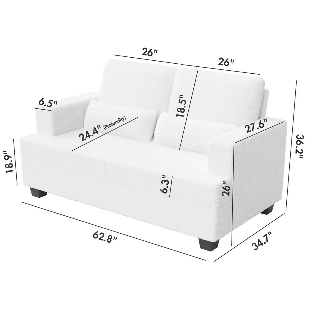 Velvet Upholstered Removable Back Cushion Loveseat With 2Pcs Waist Pillow - White
