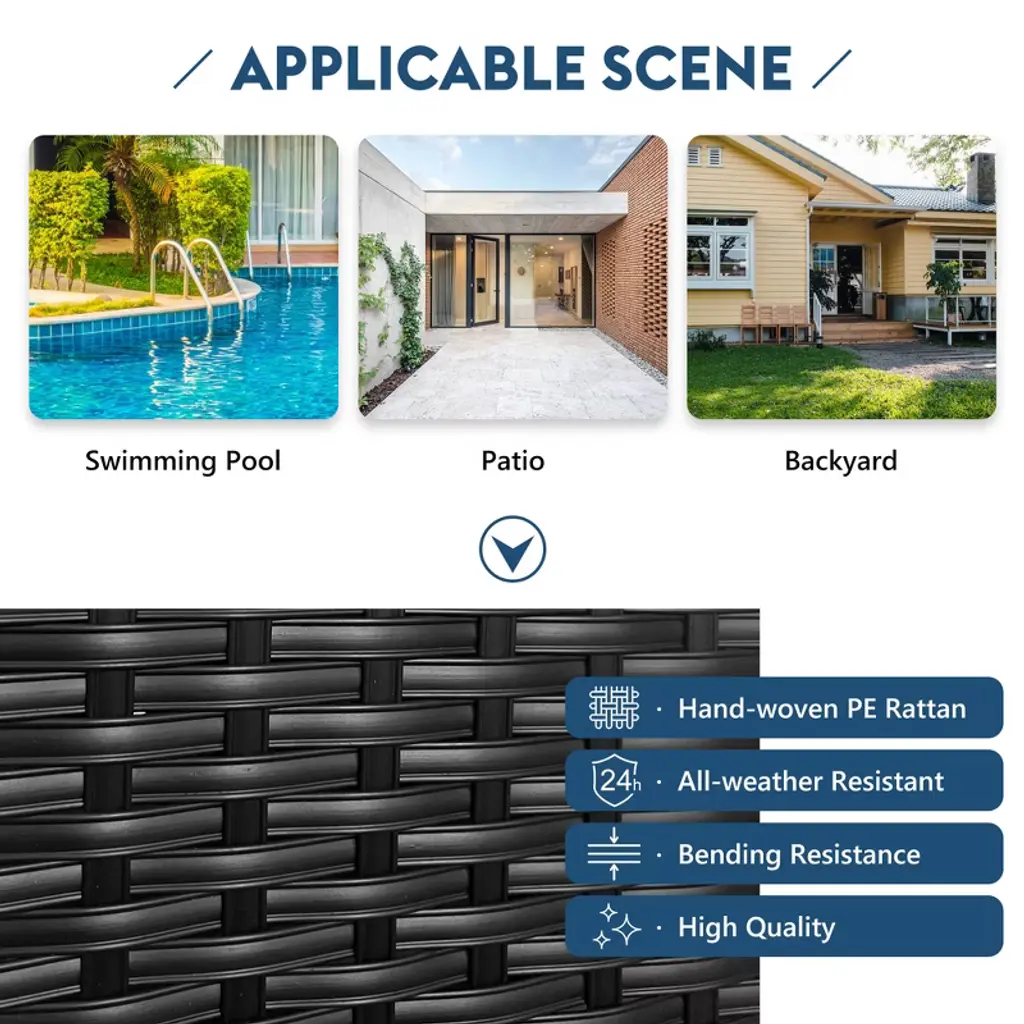 Yoocozz 79.9" Pe Rattan Outdoor Sunbed With Canopy And Pillows - Black+blue