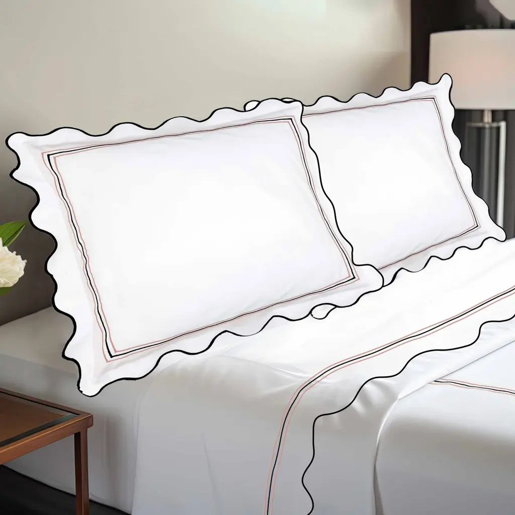 Elevate your bedroom with the 3 Lines and Waves Pillowcase from The Lino. Featuring a refined embroidery of three delicate lines, it adds a touch of sophistication to your bedding. Made from 100% Egyptian cotton with a 400-thread count, it offers luxurious comfort and a crisp, breathable feel. Experience the perfect blend of style and comfort with this premium pillowcase. Highlights