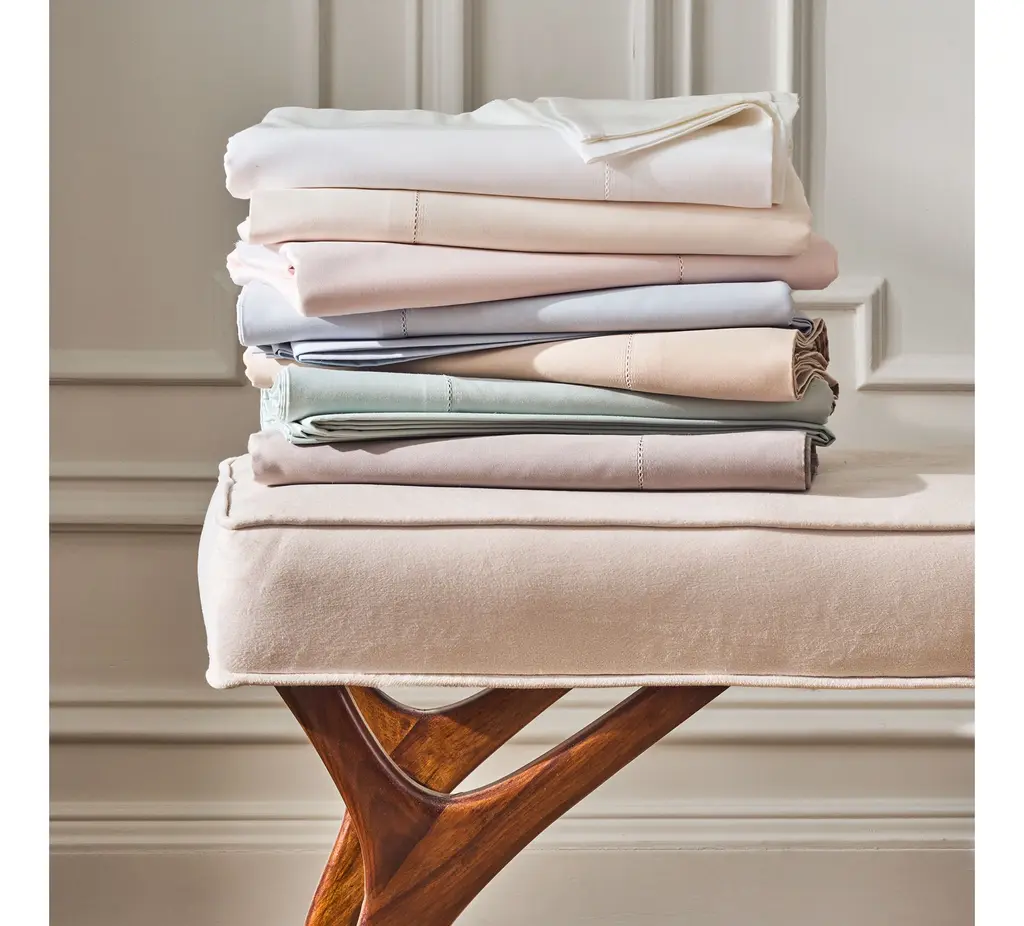 Smooth and sumptuous, Hudson Park Collection's 680-thread count Supima sateen sheets boast a single hemstitch detail at the cuff of the flat sheet and pillowcases, all in a soft, neutral color palette.