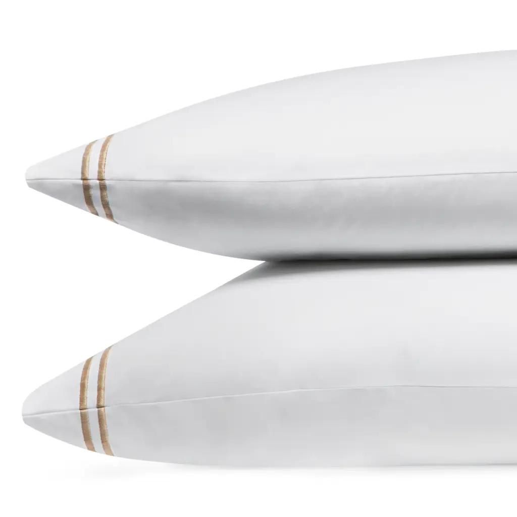 Axel is a lively offering that features playful zigzag embroidery in a variety of color combinations. Woven from long-staple cotton for an exceptionally soft hand, Axel lends a spirited energy to the modern bed with its graphic stitched trim. Pair Matouk's Axel bed linens with the matching Sierra fitted sheet.