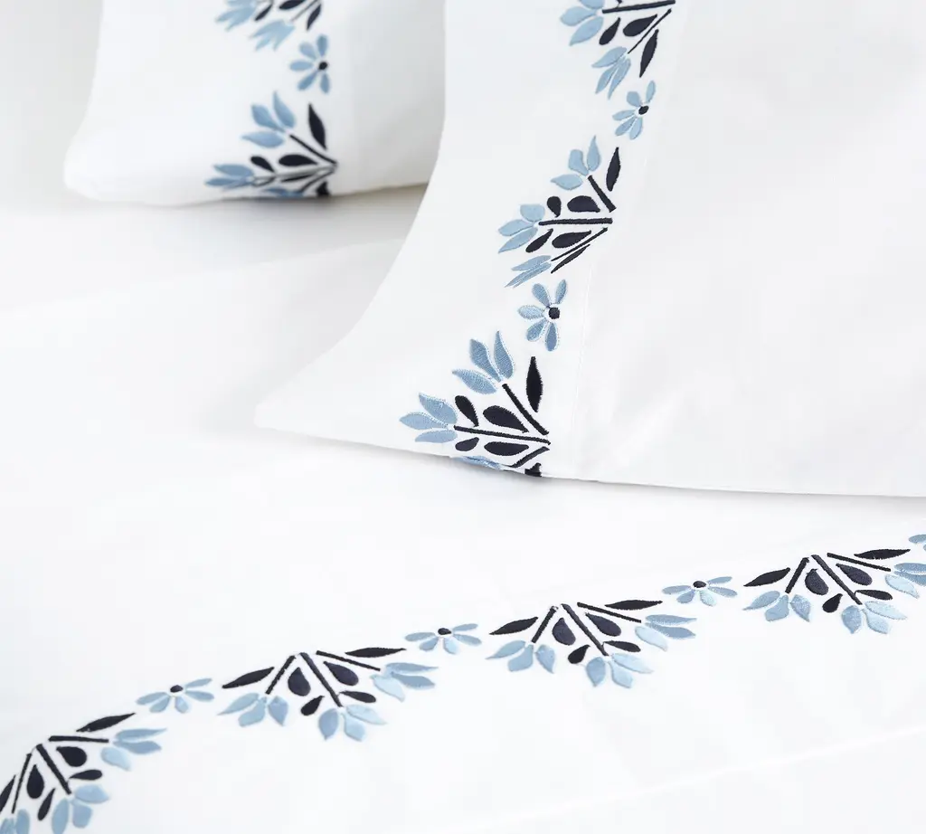Blossom Embroidered Organic Percale Pillowcases - Set Of 2
