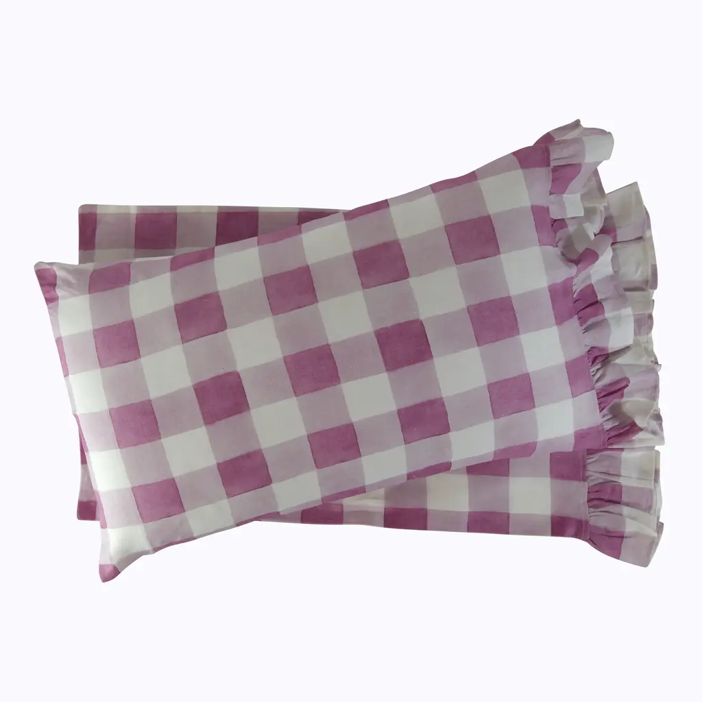 Blossom Plaid Linen Ruffle Pillowcase Pair