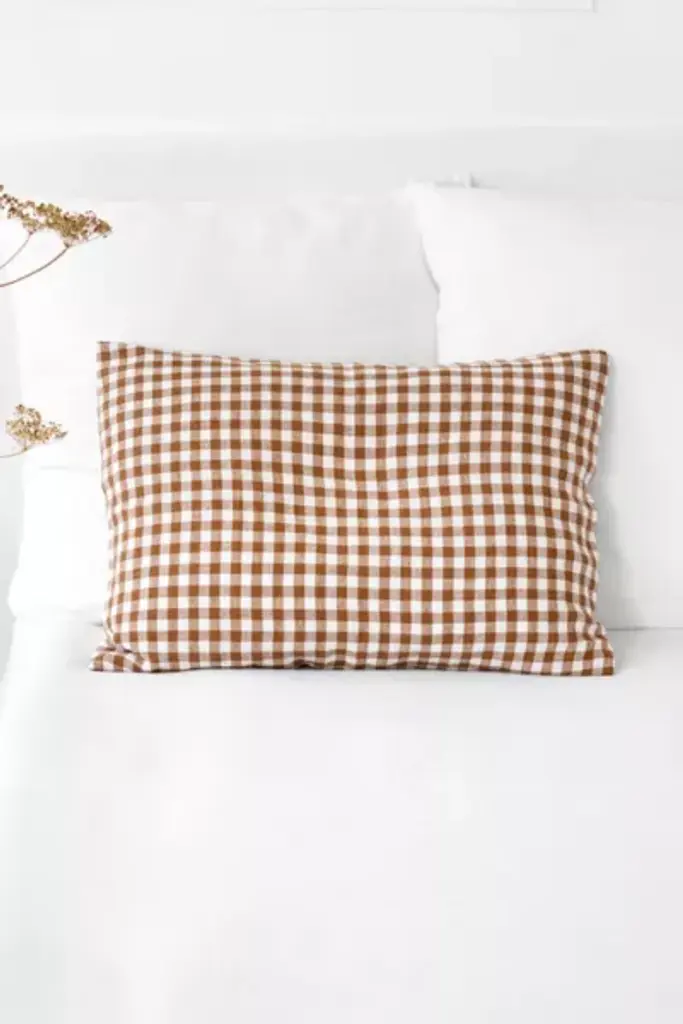 Discover the Blossom Plaid Linen Ruffle Pillowcase Pair by abcDNA. Crafted in Italy for abc, this linen pillowcase set features a ruffle edge, offering a romantic touch to traditional and nostalgic interiors. Available in shades of orchid, green, and brick, as well as Standard and King sizes.