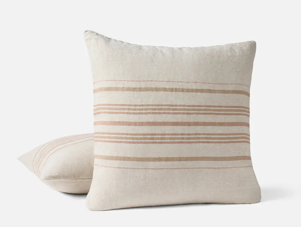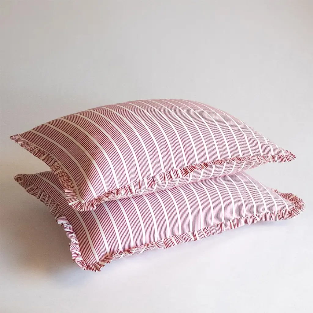 Discover the timeless sophistication of stripes with abcDNA’s Blossom Stripe Voile Pillowcase Pair. Crafted in soft cotton voile and designed in lavender, green, and brick hues, this classic pillowcase set evokes summer’s effortless elegance. Available in Standard and King sizes. Made in Italy.